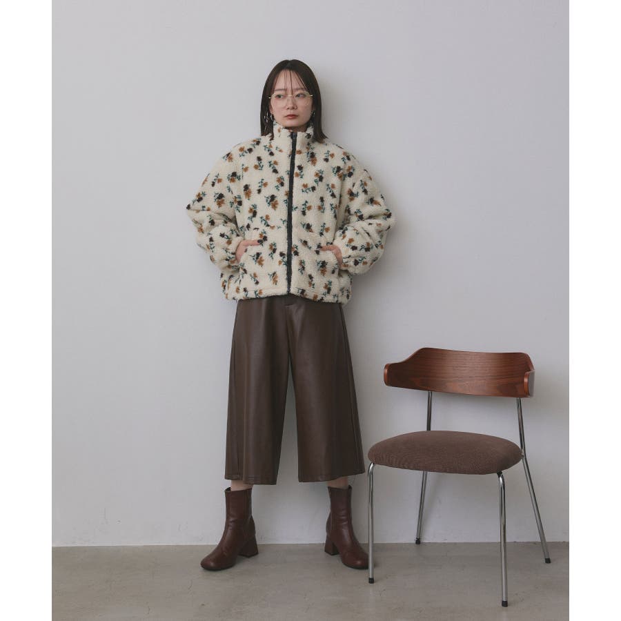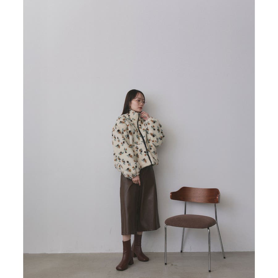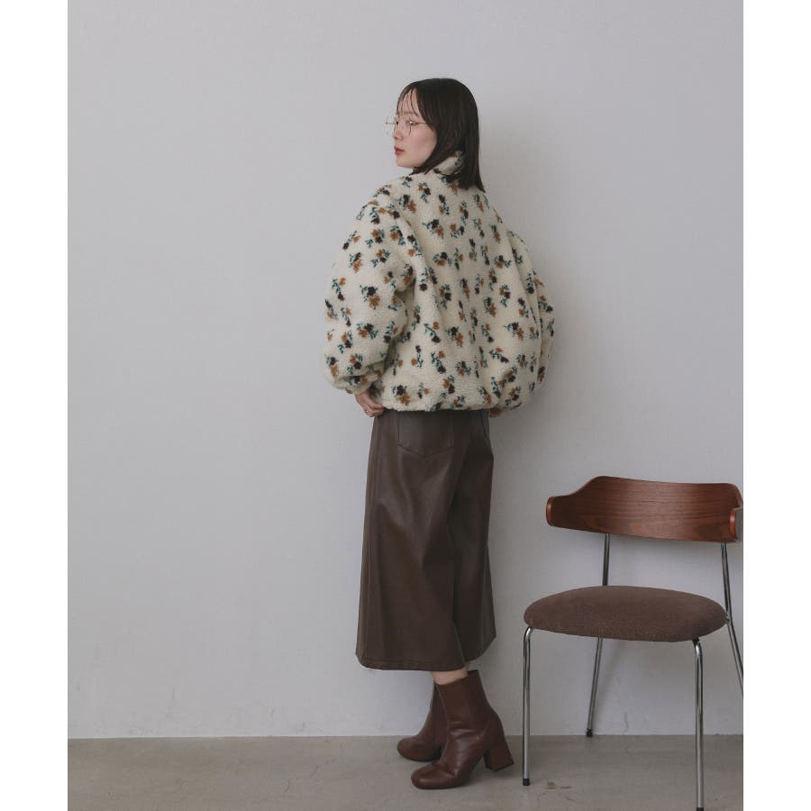 ・花柄×ボアで程良くフェミニンな印象に