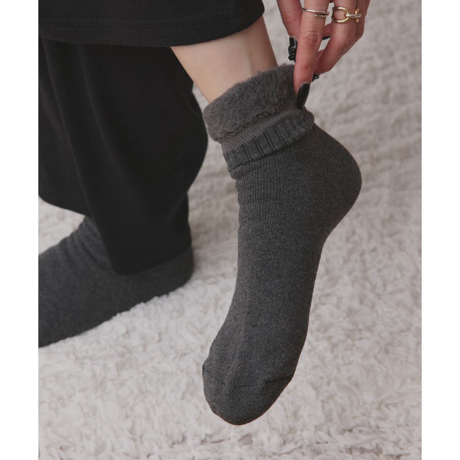 裏地がシャギー素材になった防寒力抜群のクルーソックスです。