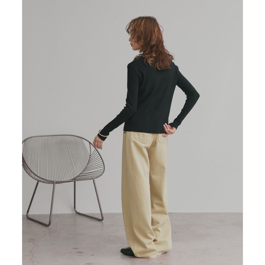 細めのリブ編みが身体のラインを綺麗に見せつつ、伸縮性もあるのでストレスフリーな着用感に。
