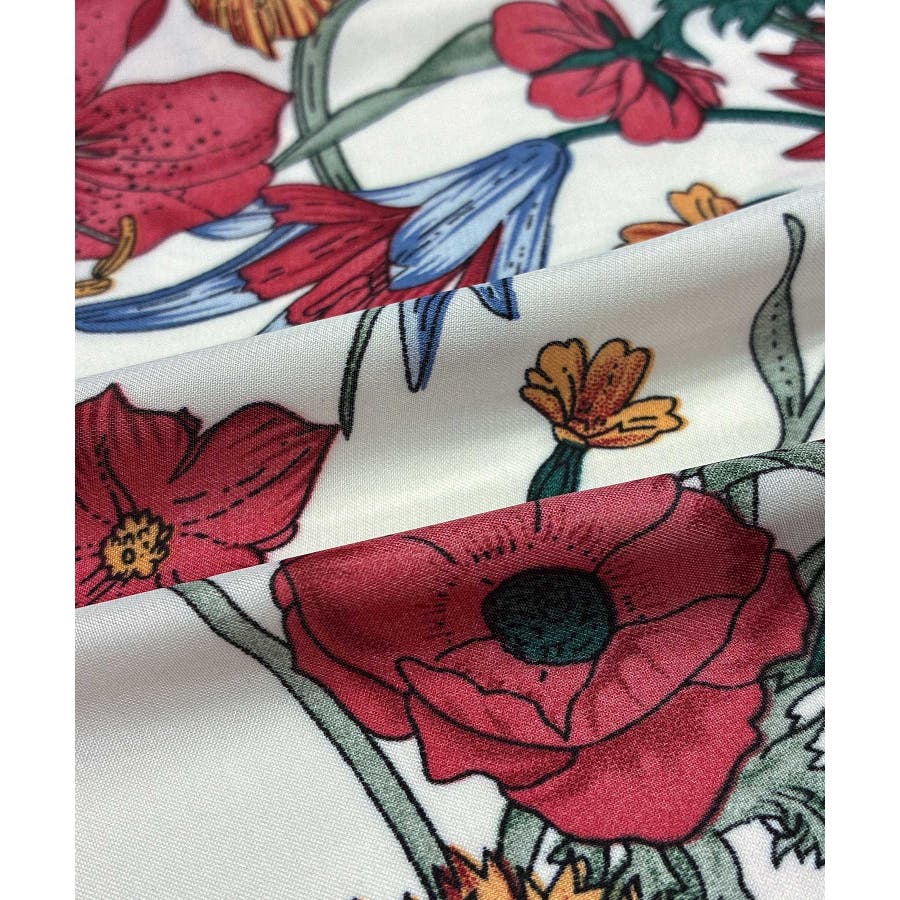 大胆な花柄でコーデ全体をぐっとこなれた印象に仕上げてくれる1枚です。
