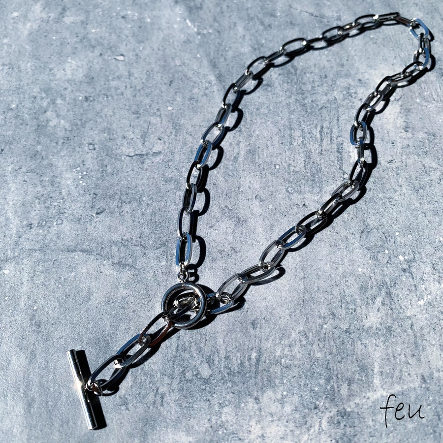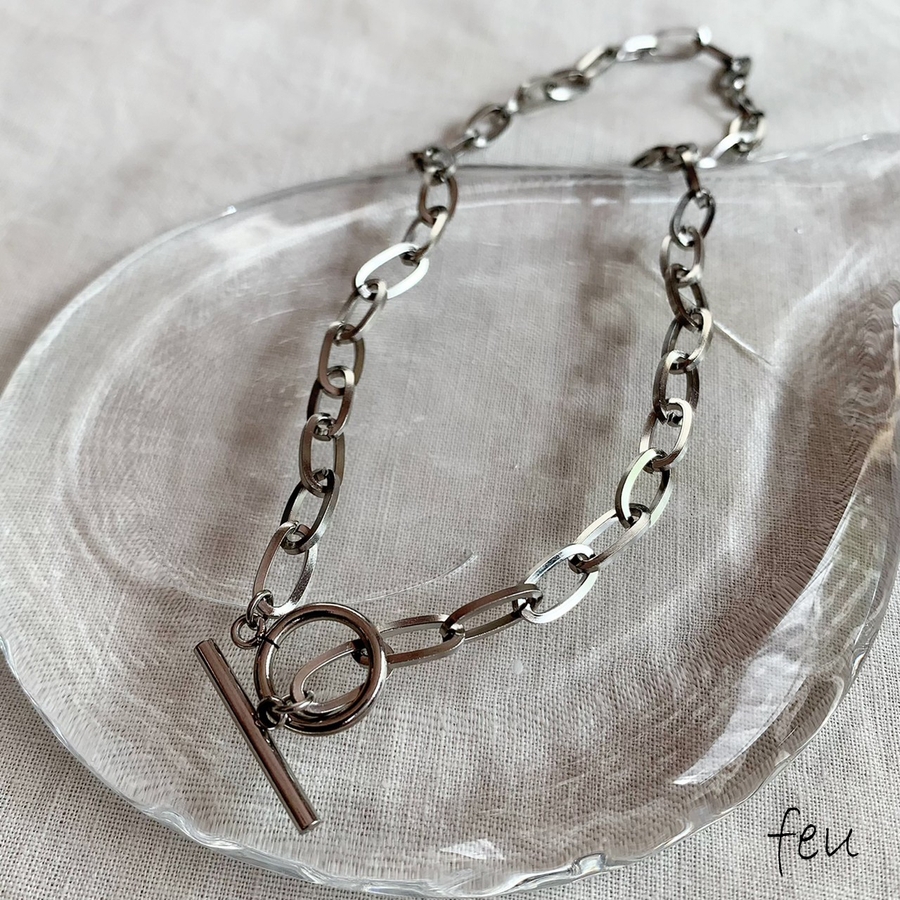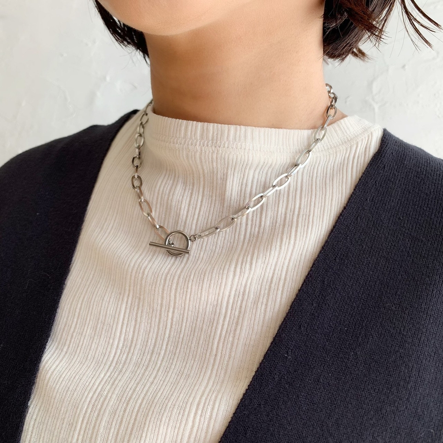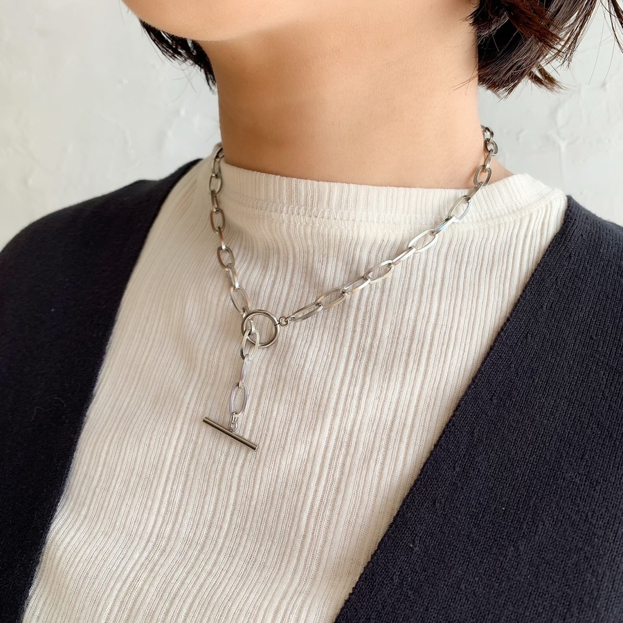 オーバルモチーフのリングが首元にエッジを効かせるネックレス