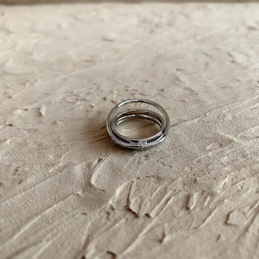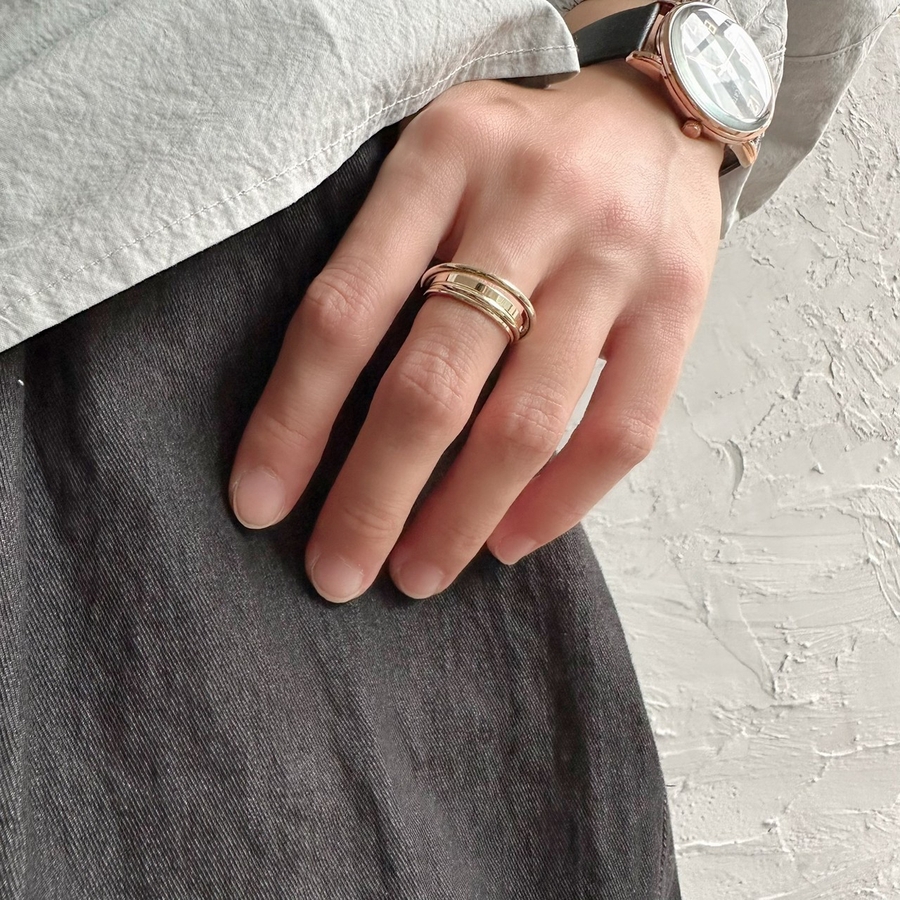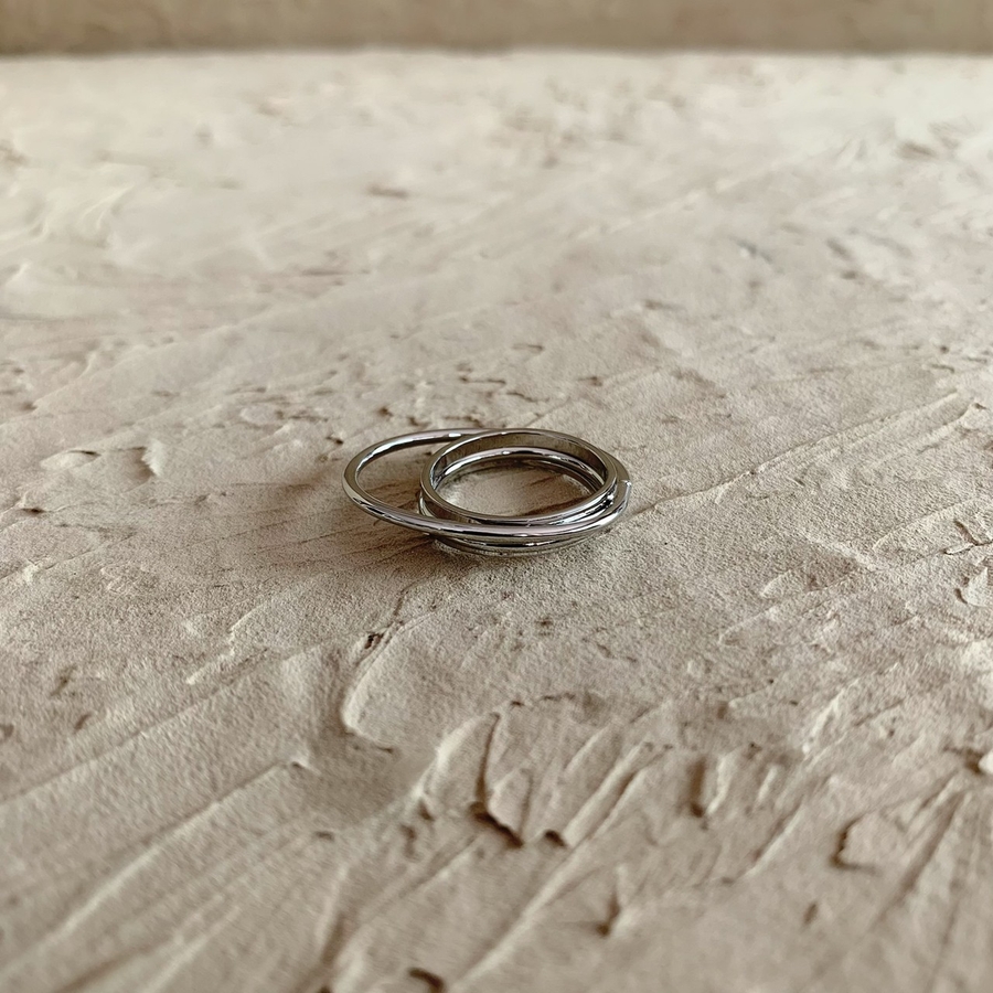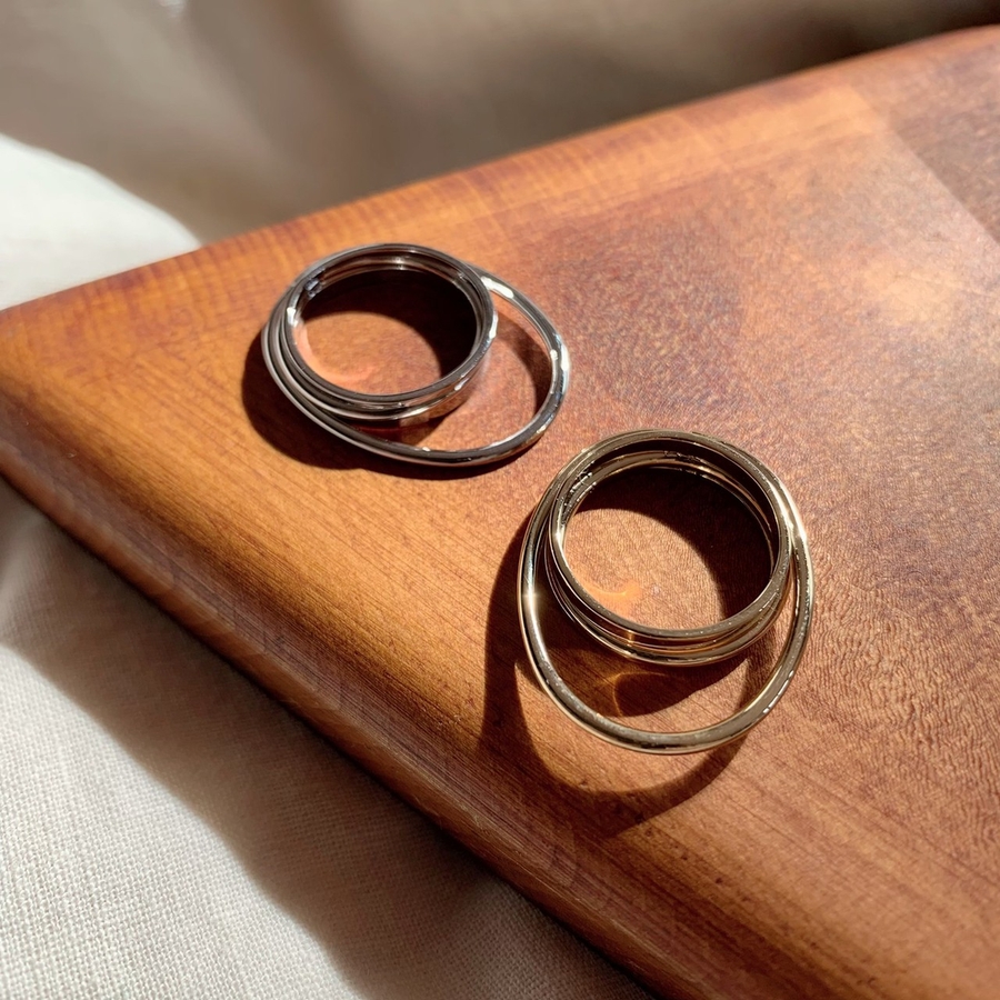 重なったラインが特徴的なデザインリング
