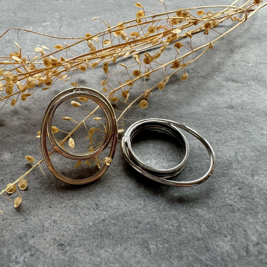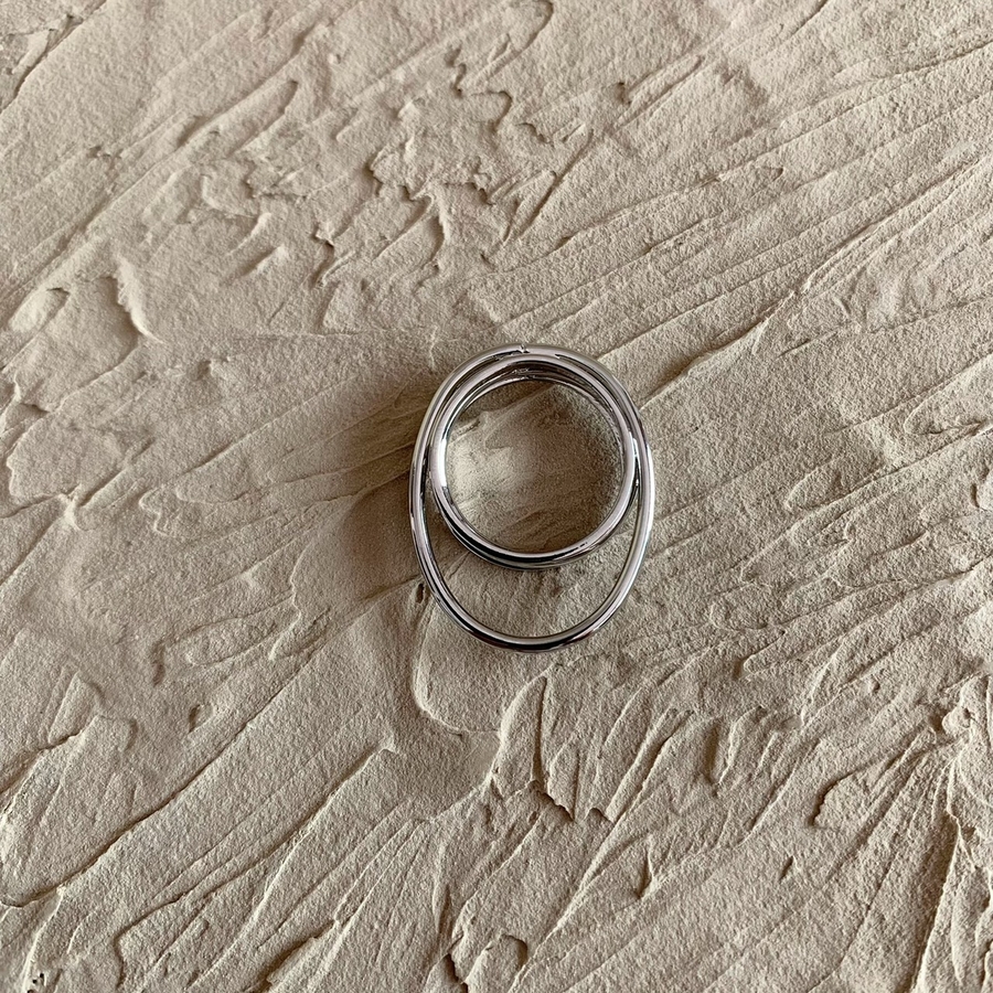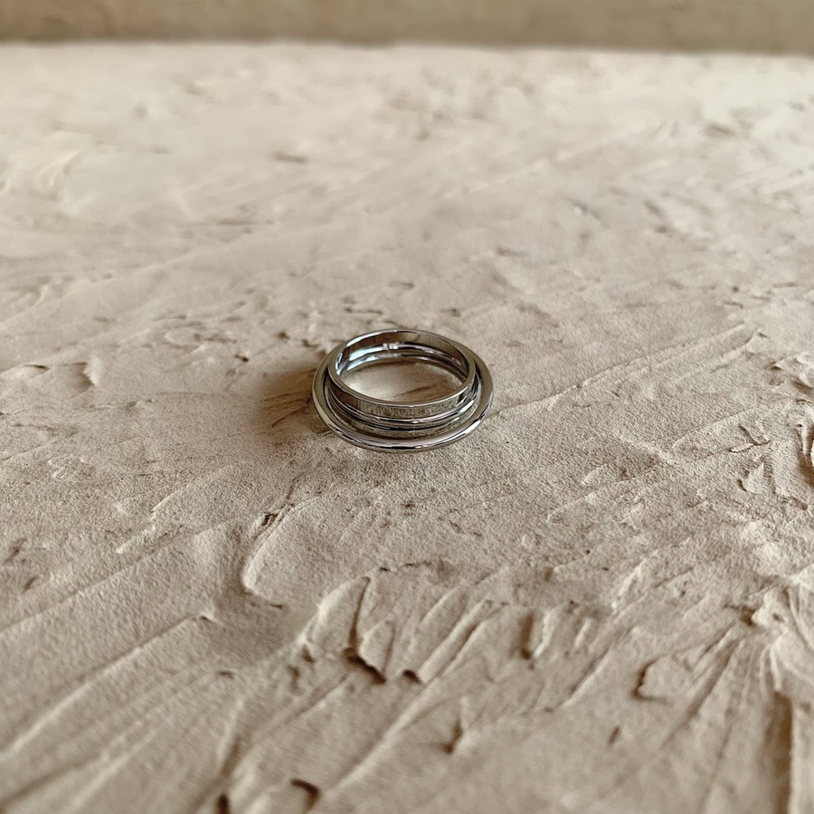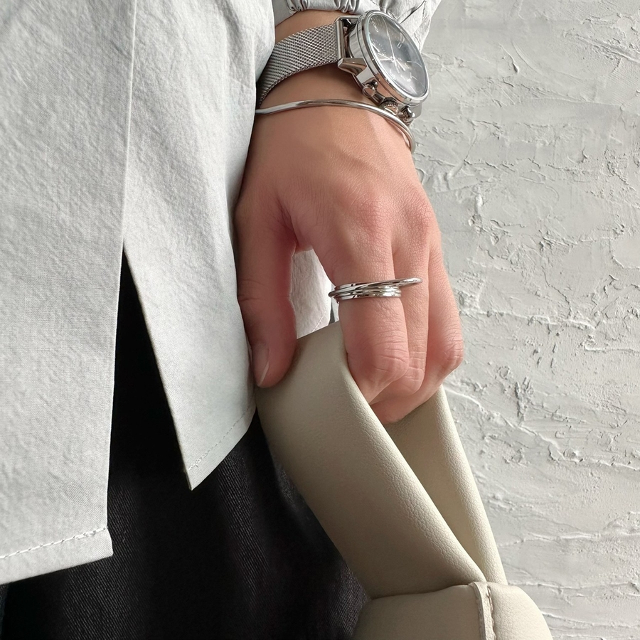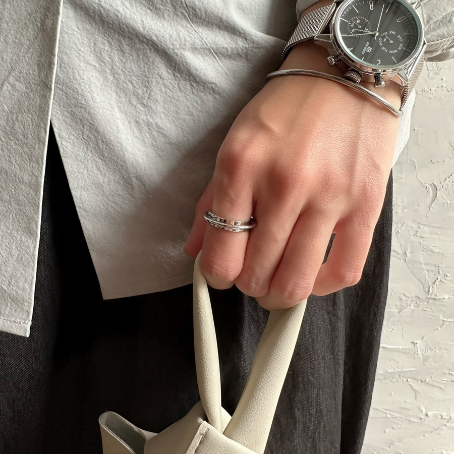 重なったラインが特徴的なデザインリング