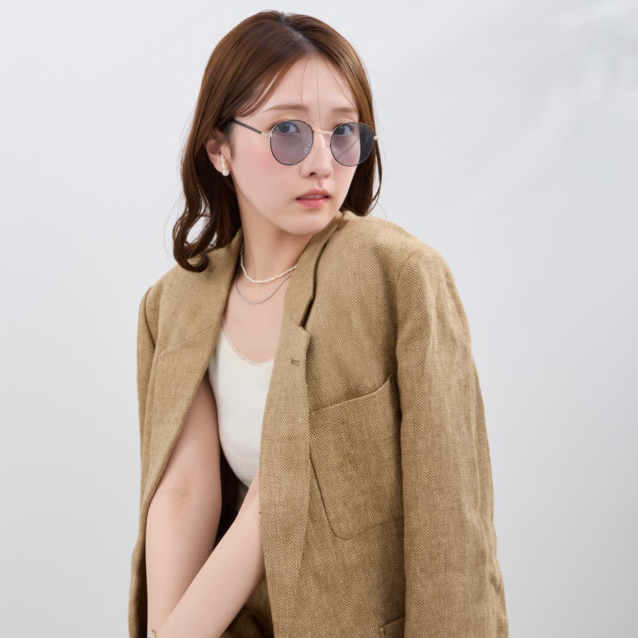 スモークがかったレンズが特徴的なラウンド型サングラス