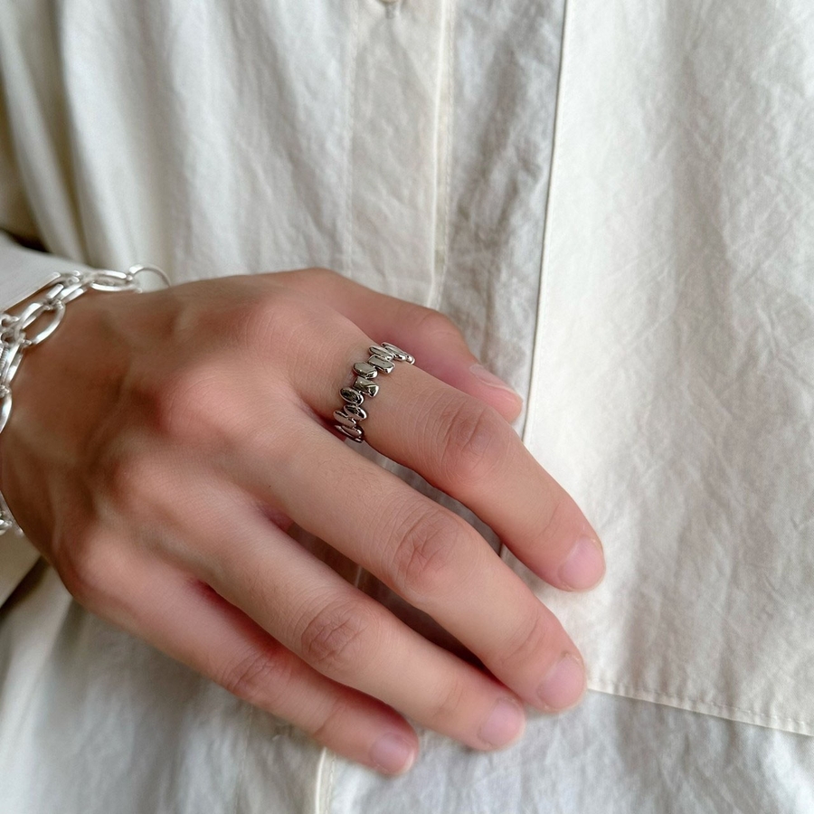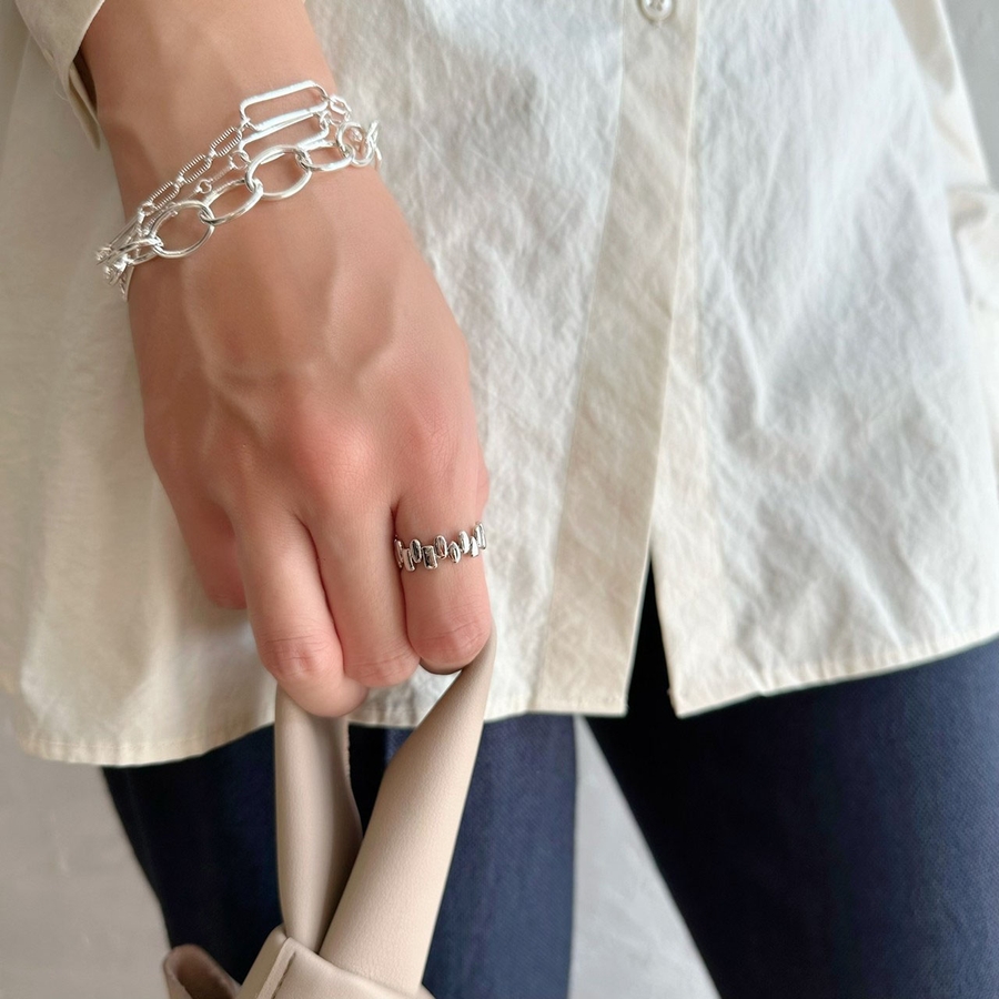 細アレンジの効いたフォルムが特徴的なメタルリング