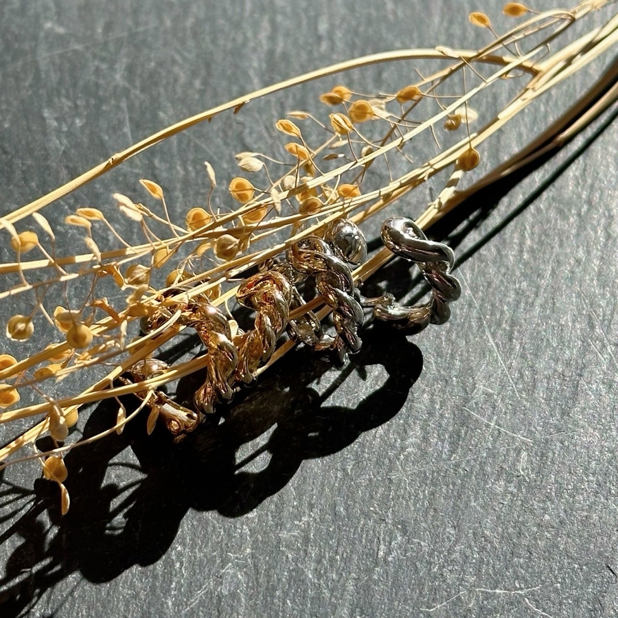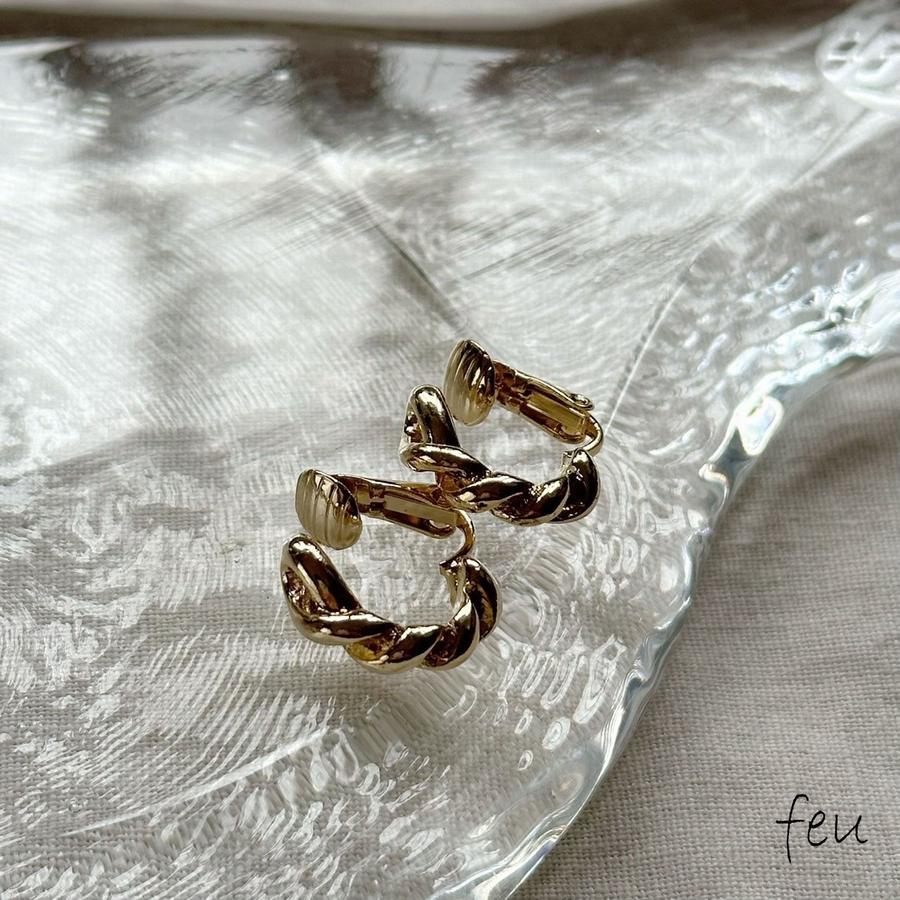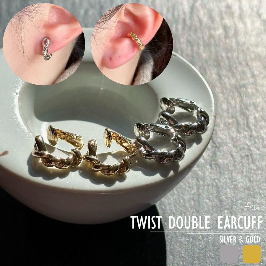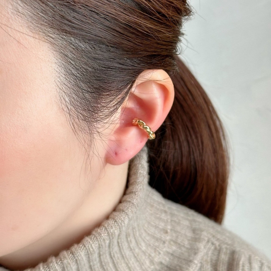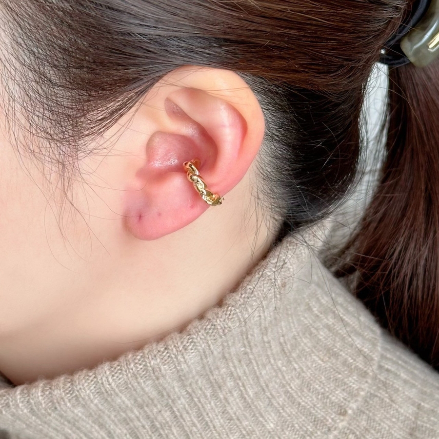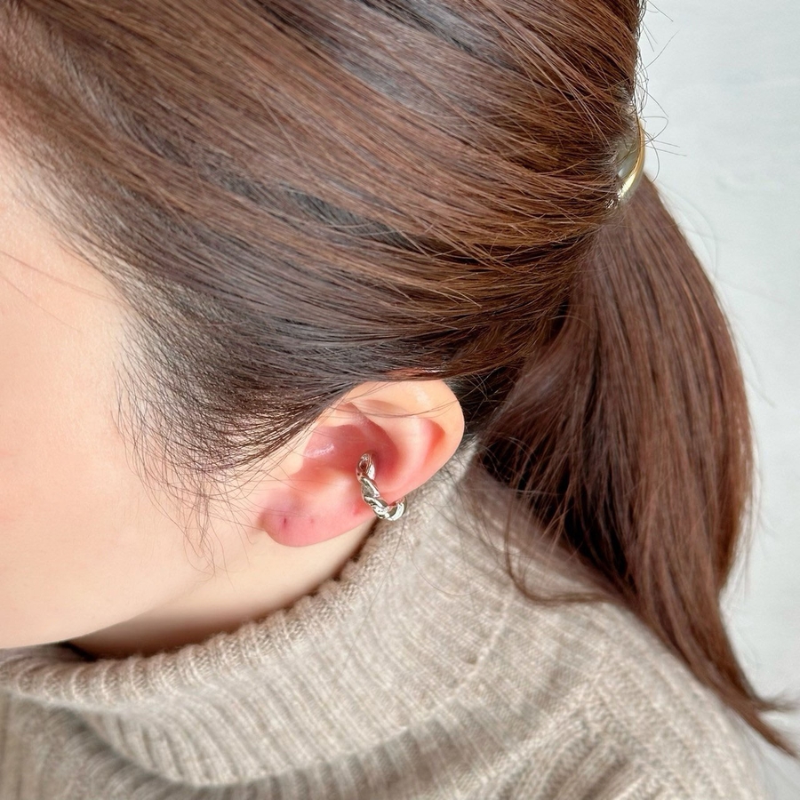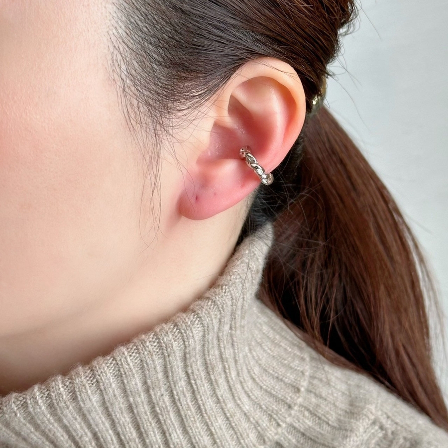 両耳クリップイヤーカフ ツイストデザイン フィット感