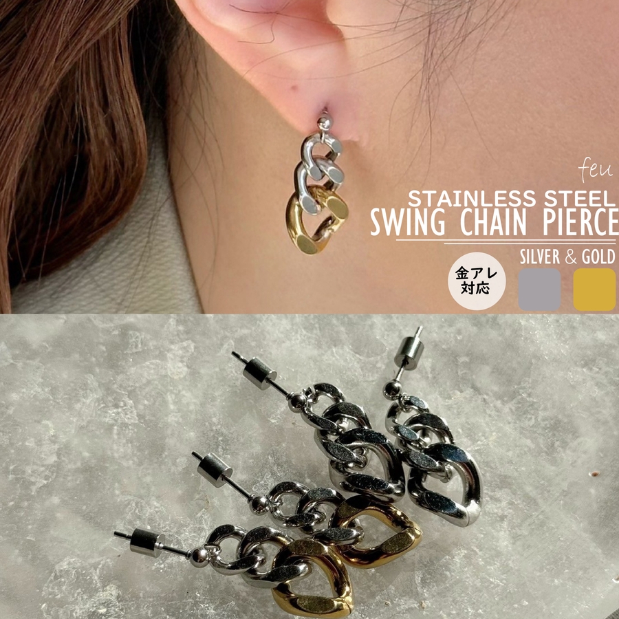 サージカルステンレス 揺れるピアス チェーン