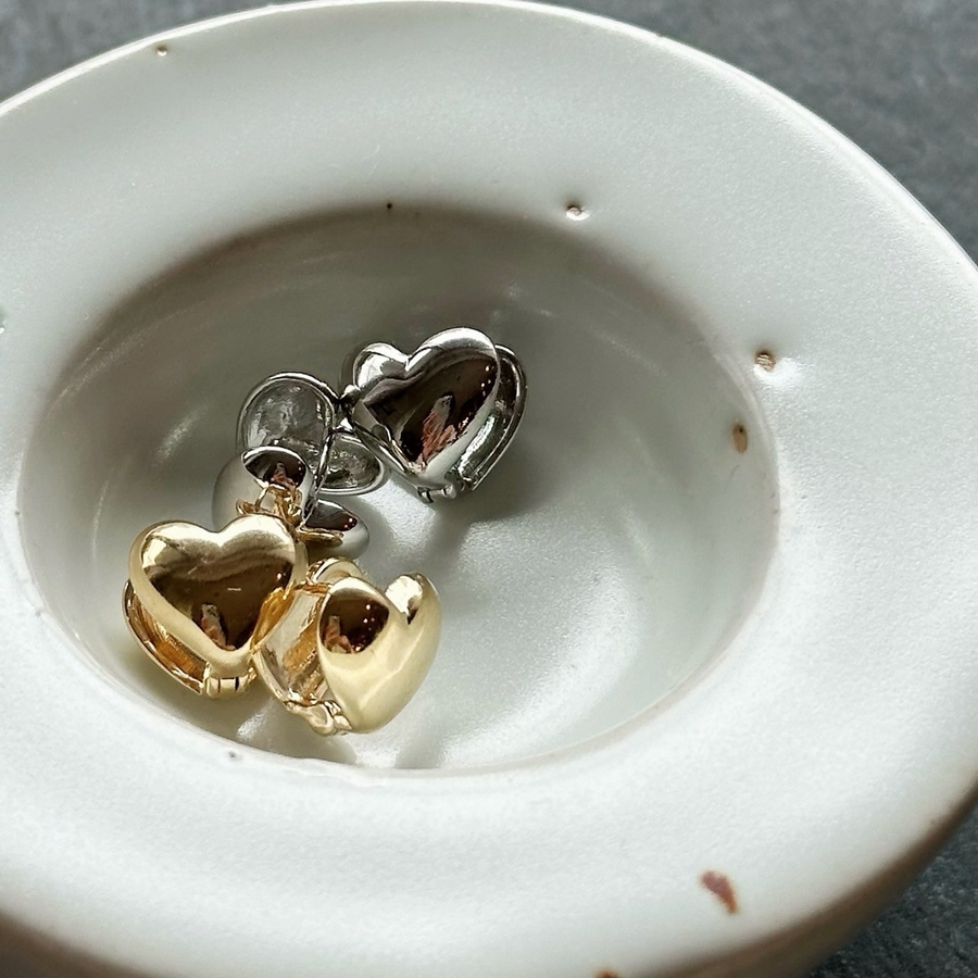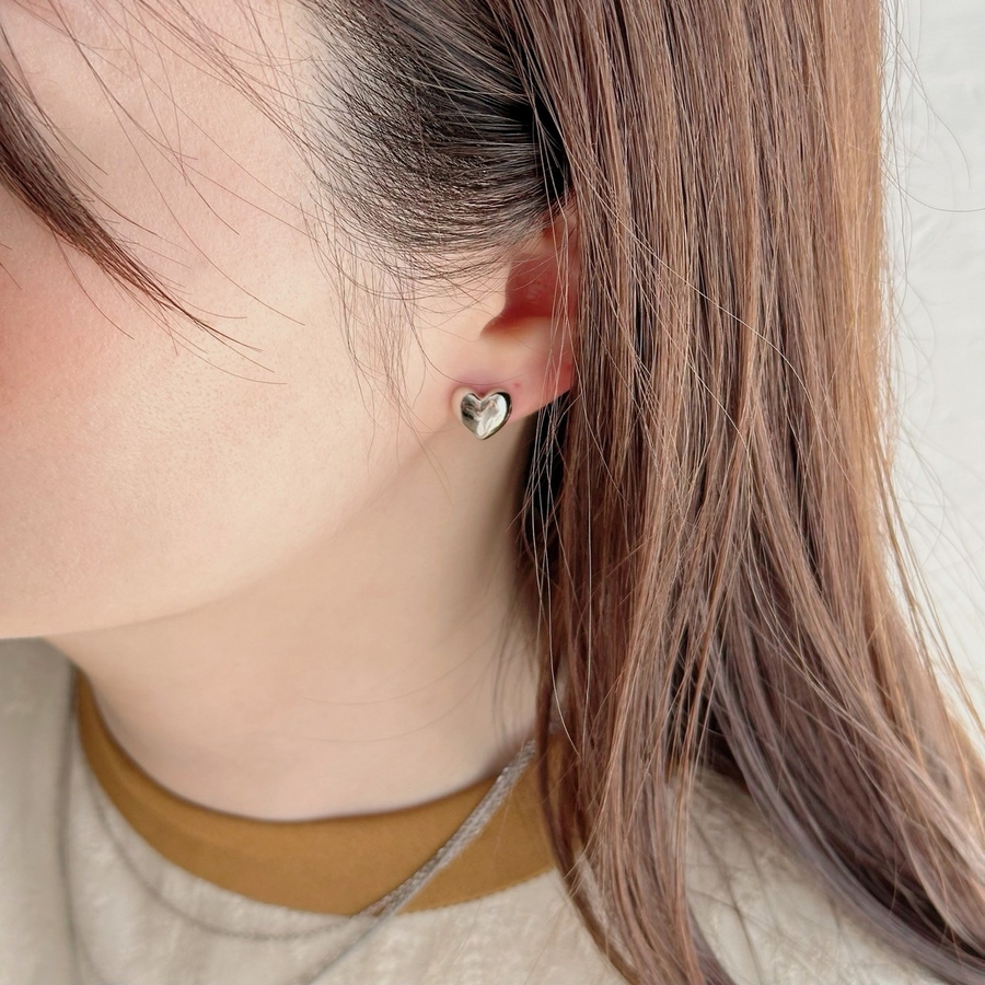 小さいハートがキラッとするのでとてもかわいいです。主張が強すぎず弱すぎずでちょうど良い。たくさんつけたいです。