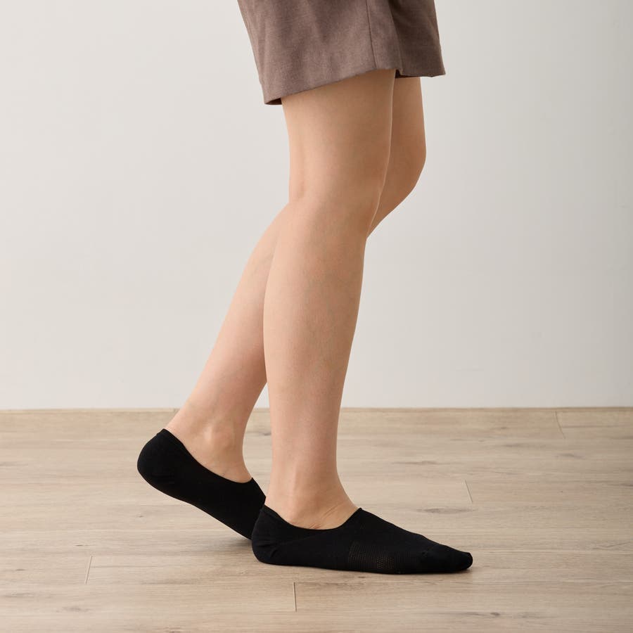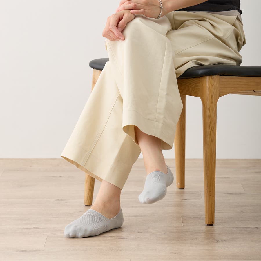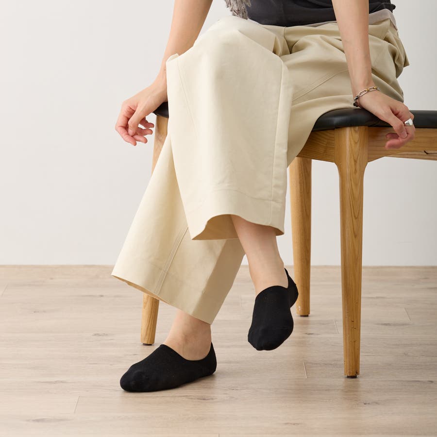 試着してみましたが、通気性の良い生地で、サラッとしていて履きやすいです。定番のブラック購入しました。