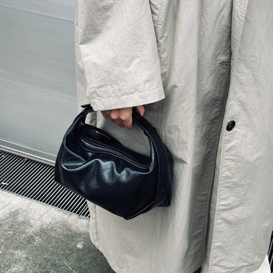 丸みのある変形コンパクトバッグ。