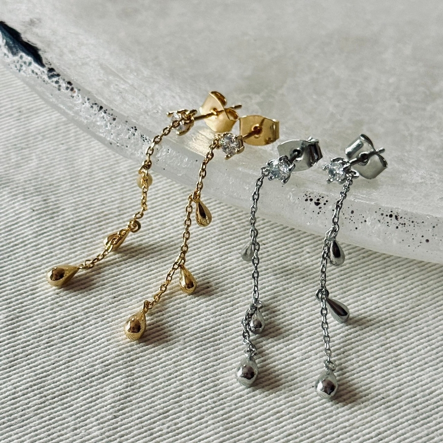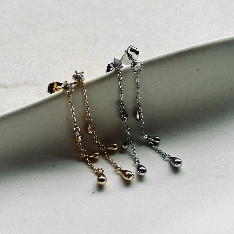 女性らしいニュアンスが漂うチェーンピアス。