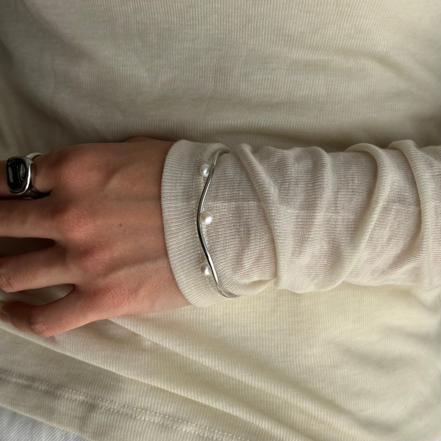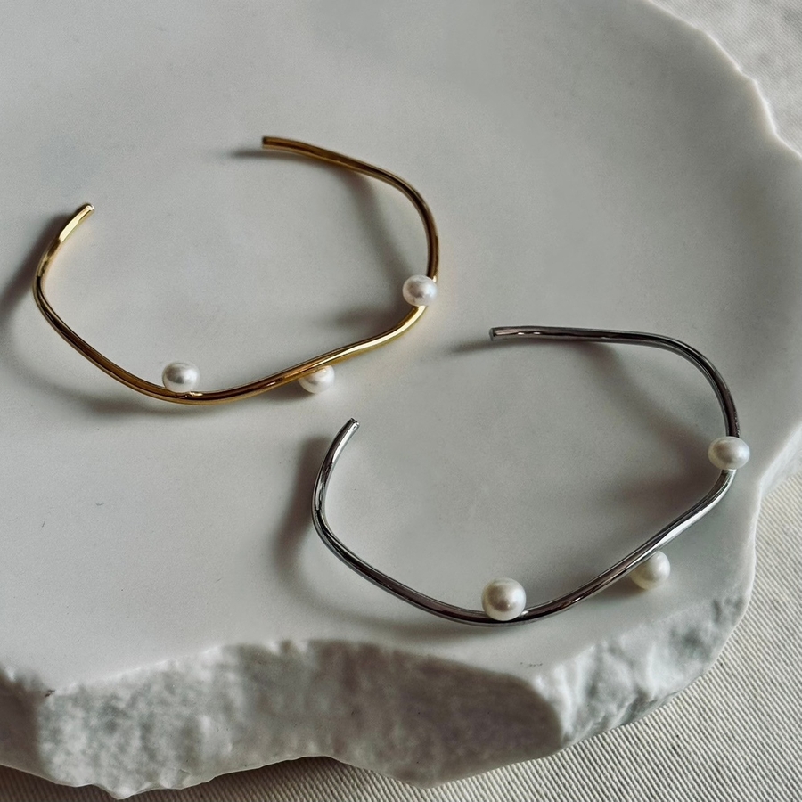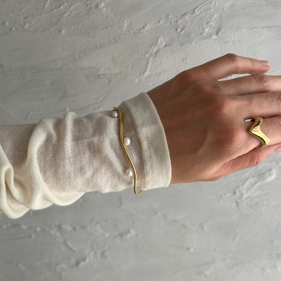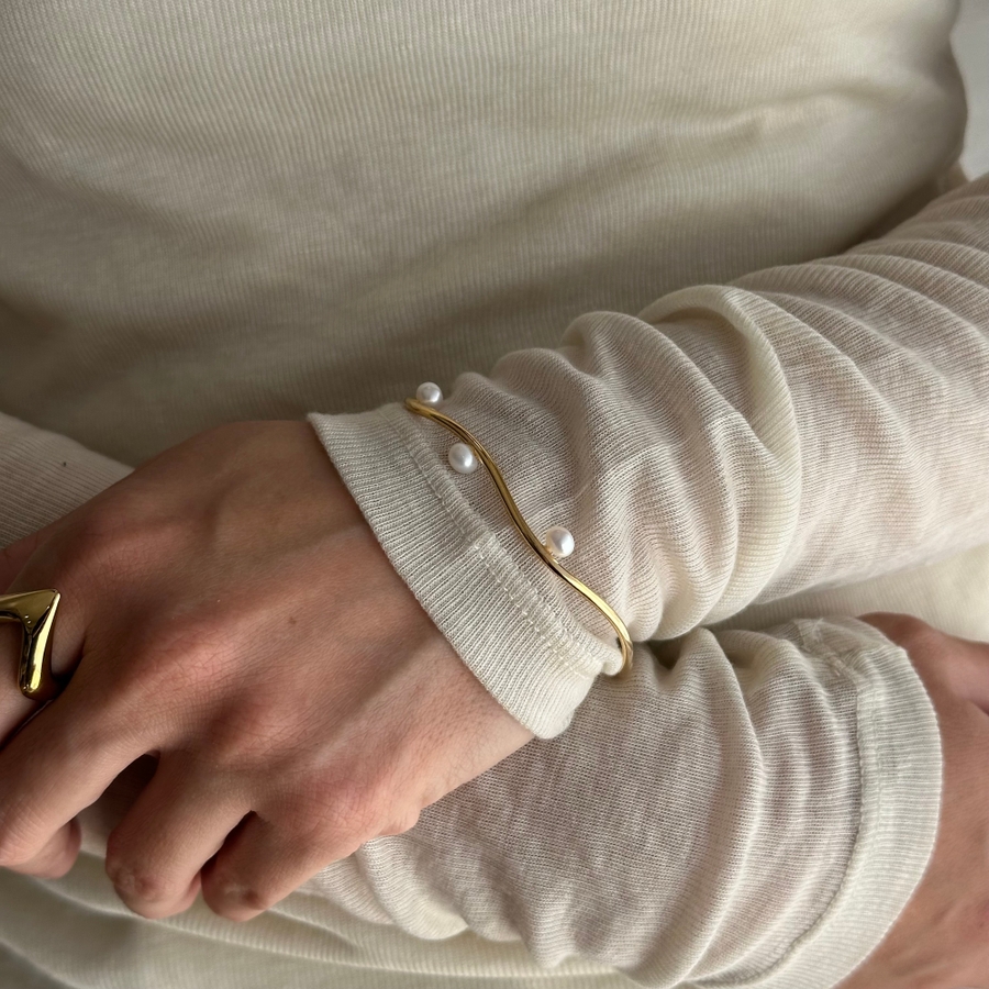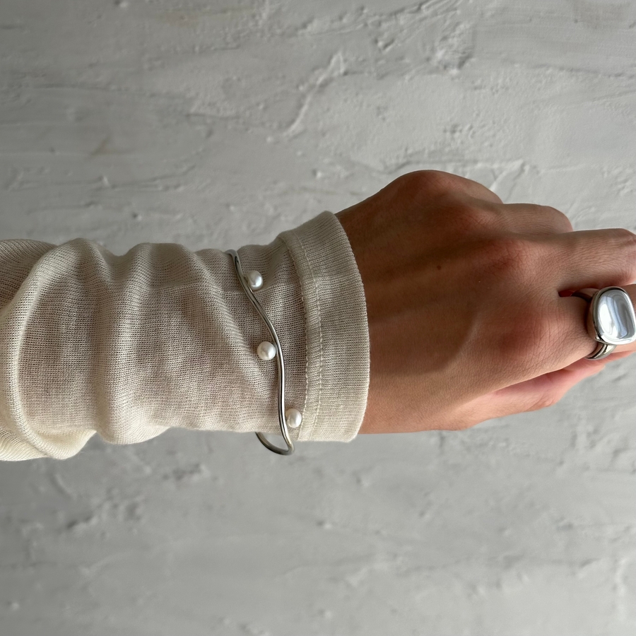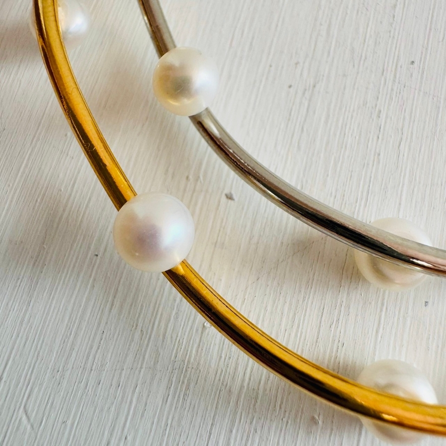 ニュアンスバングルにパールをランダム配置した印象深いバングル