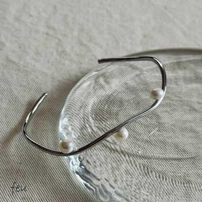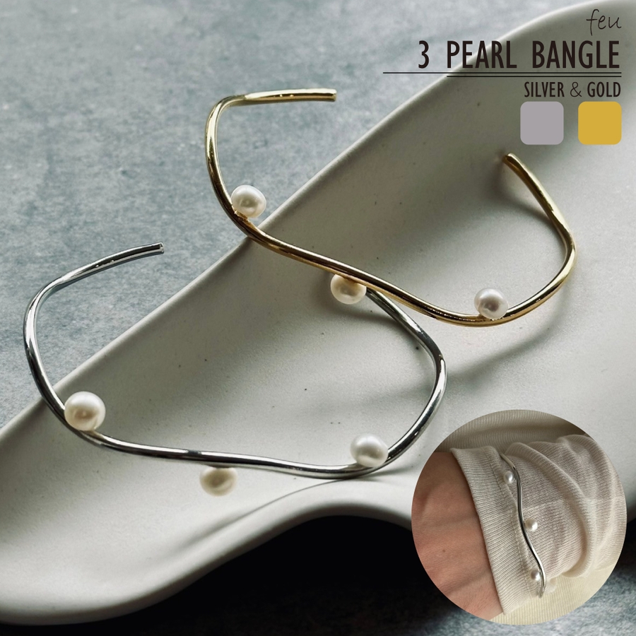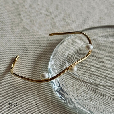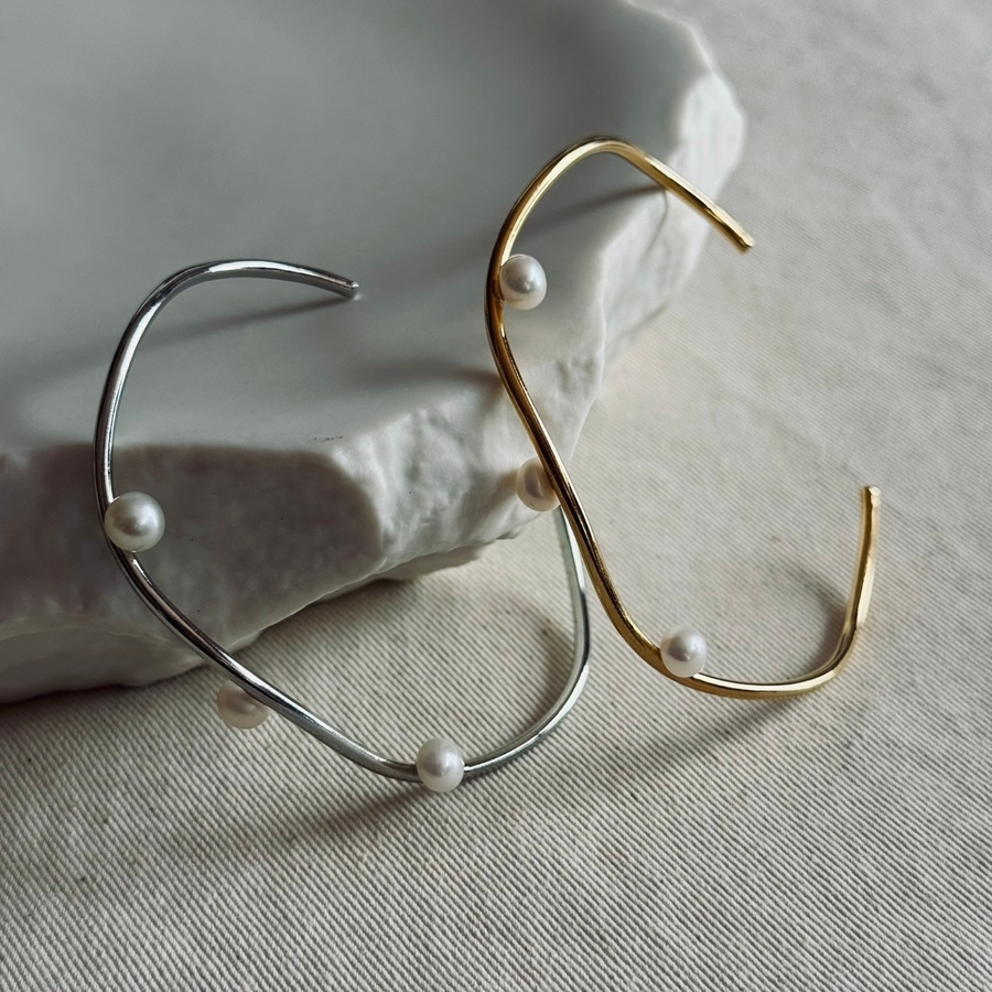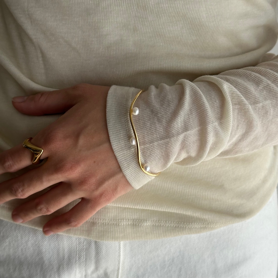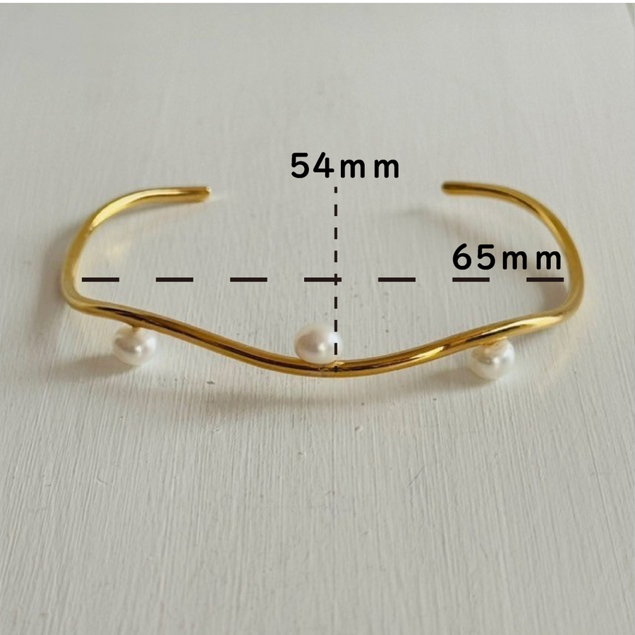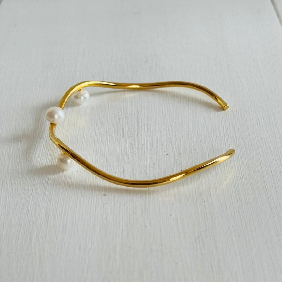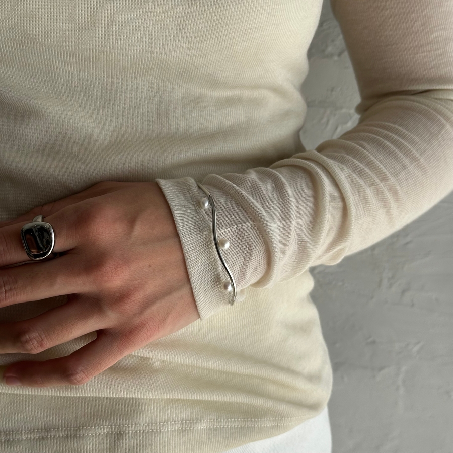 ニュアンスバングルにパールをランダム配置した印象深いバングル