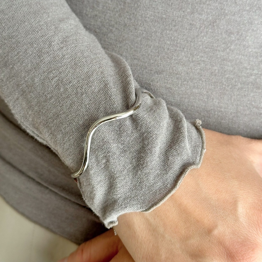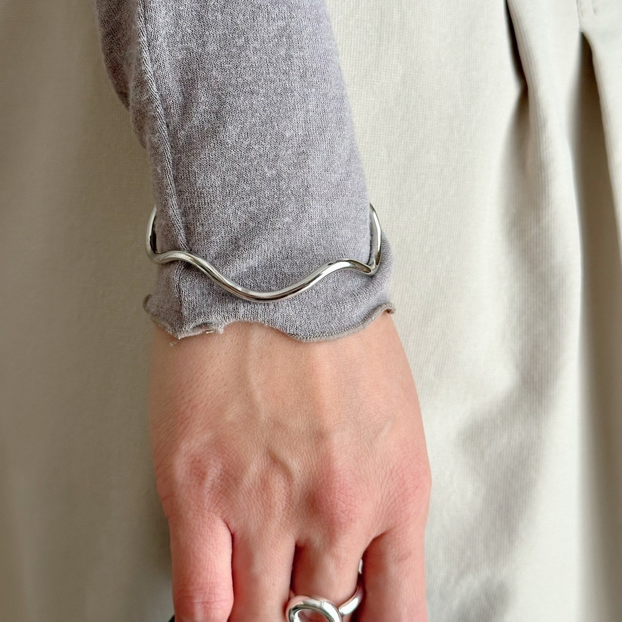 そシンプルなチェーンブレスレットと合わせたコーディネートも◎