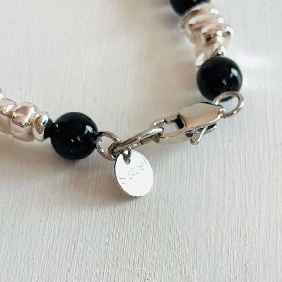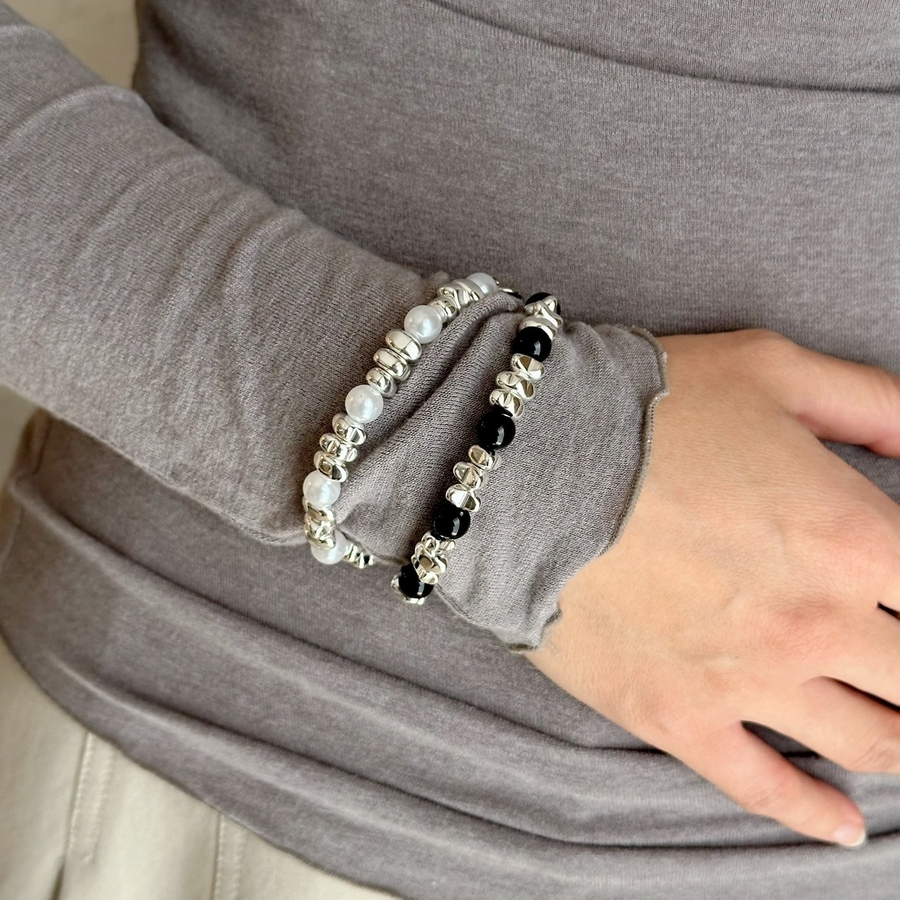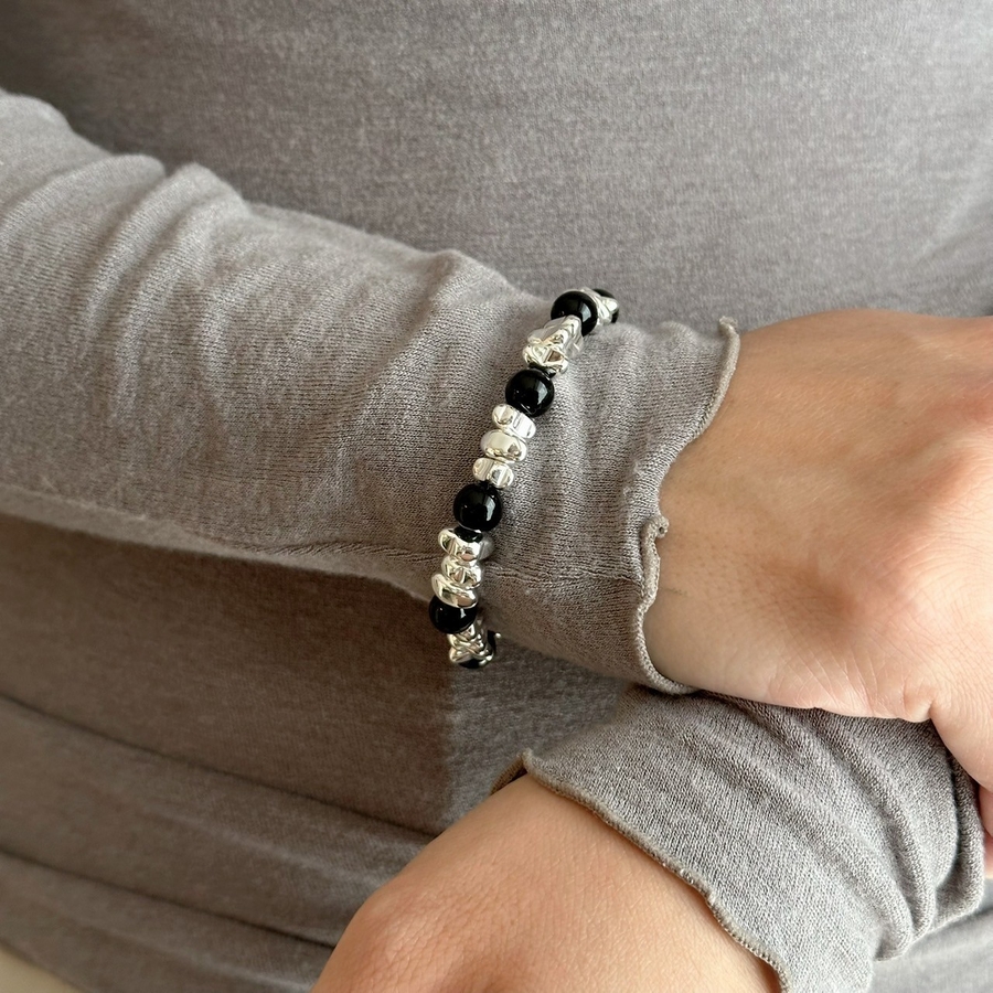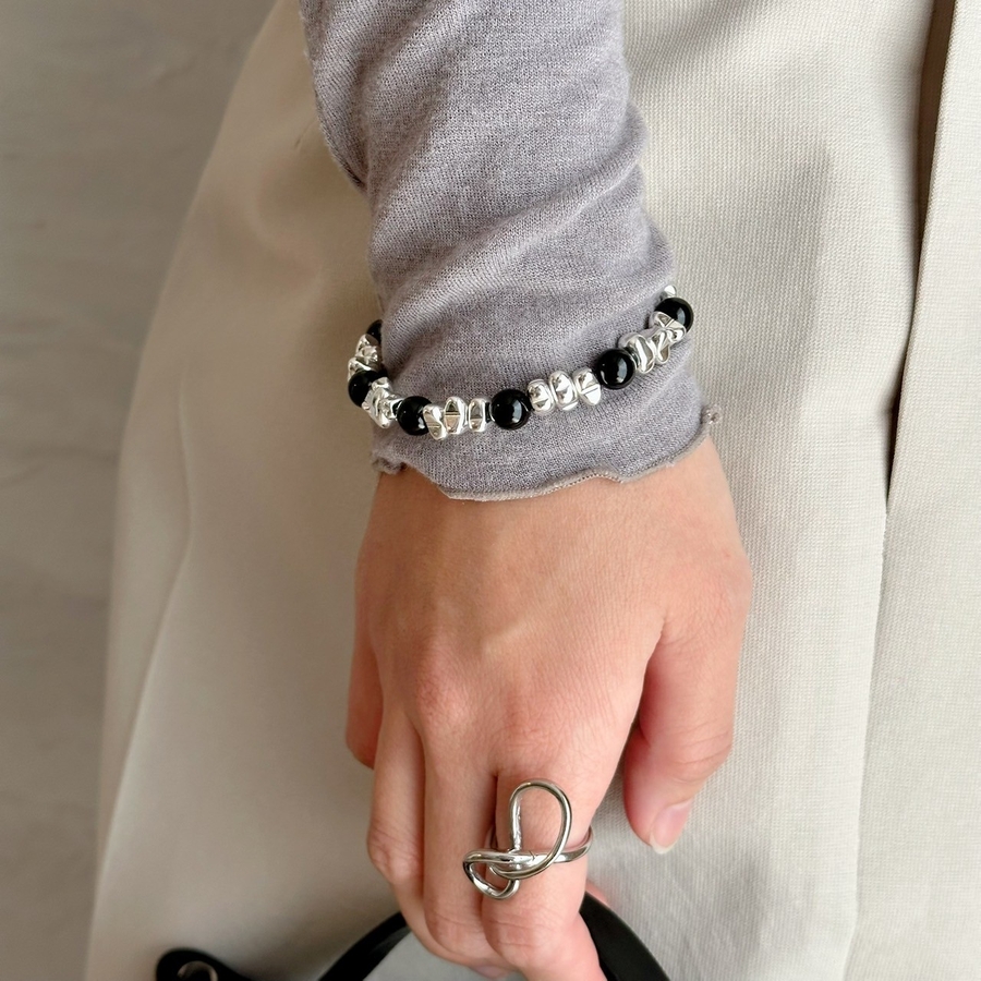 よくあるチェーンのブレスレットなら手首にそって、つけやすいと思うのですが、ビーズのため真っ直ぐぴーんとなってしまい、難しいです。