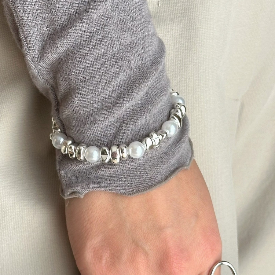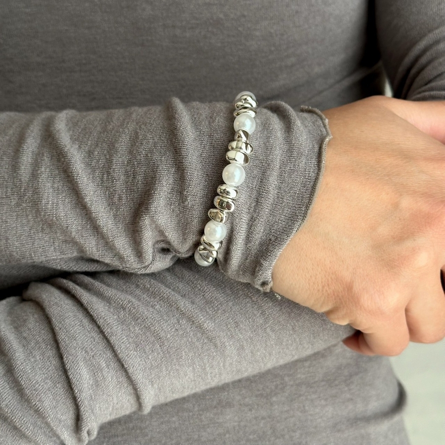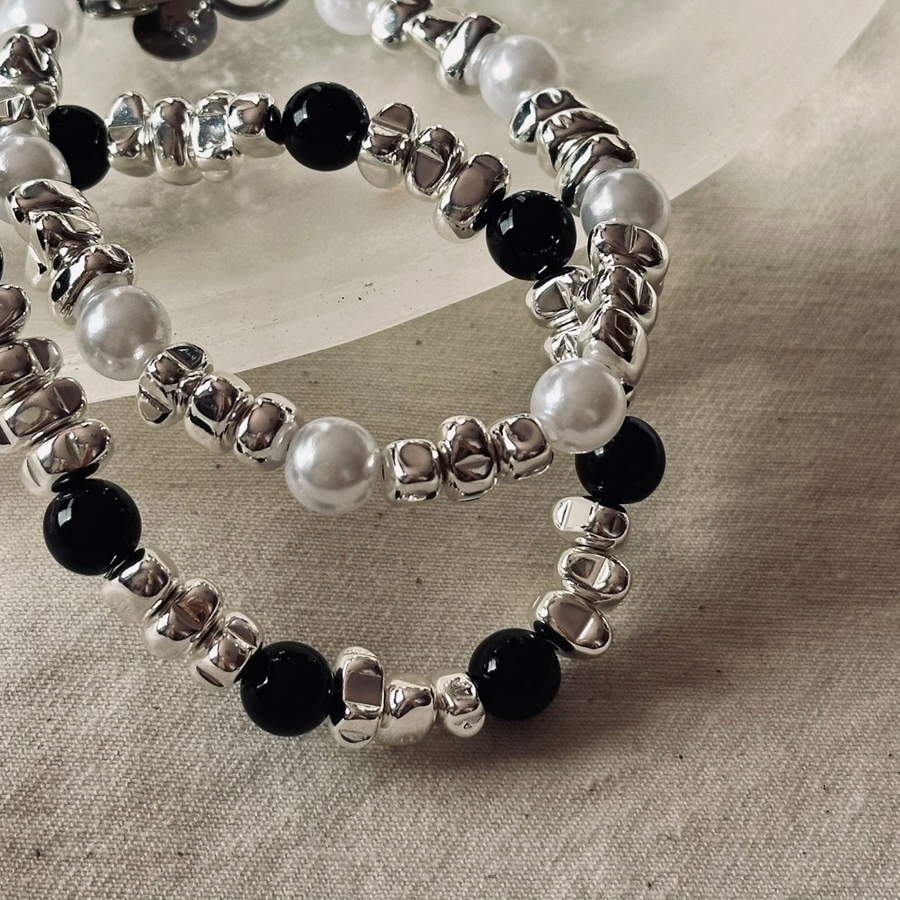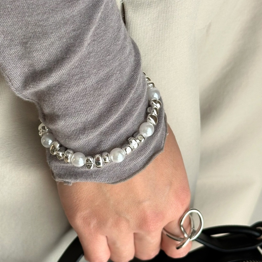 よくあるチェーンのブレスレットなら手首にそって、つけやすいと思うのですが、ビーズのため真っ直ぐぴーんとなってしまい、難しいです。