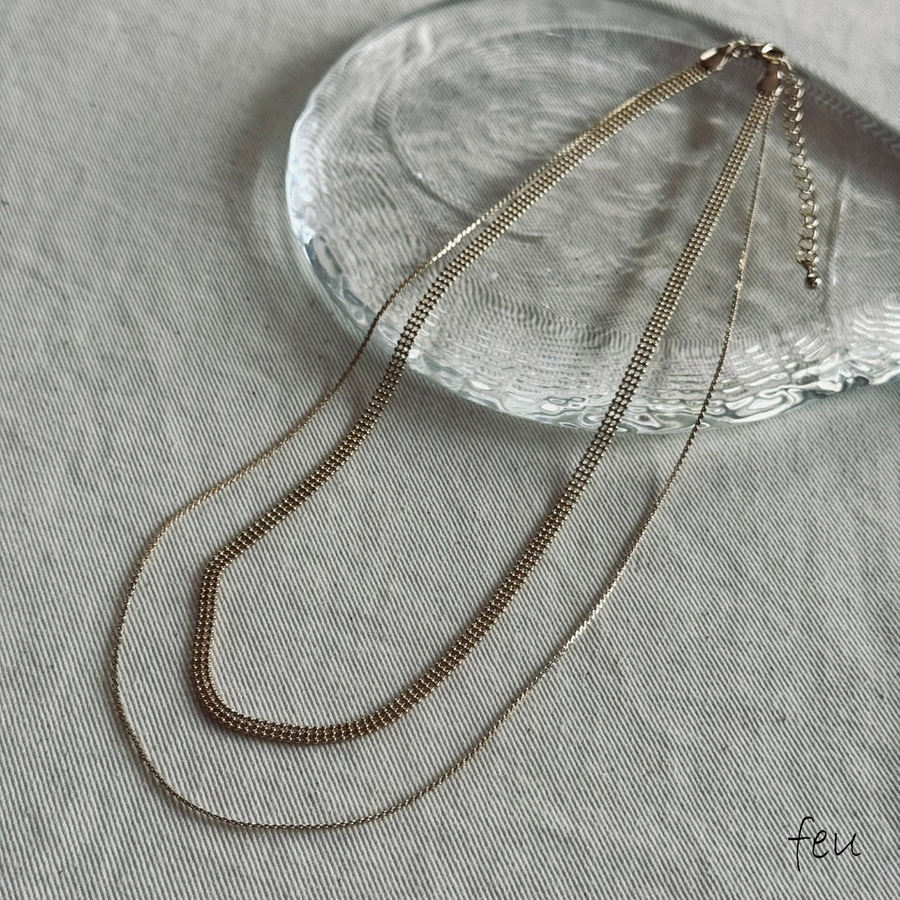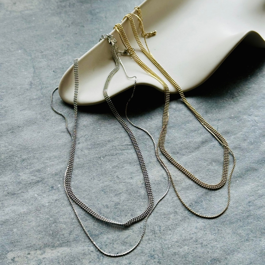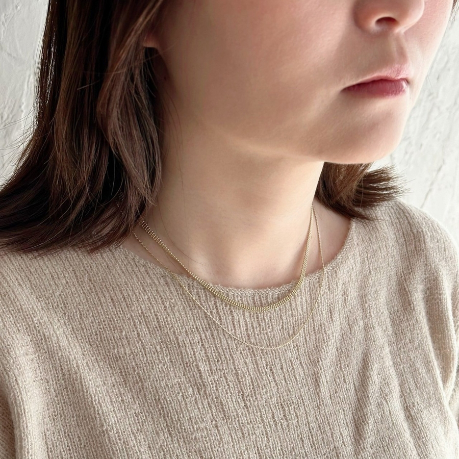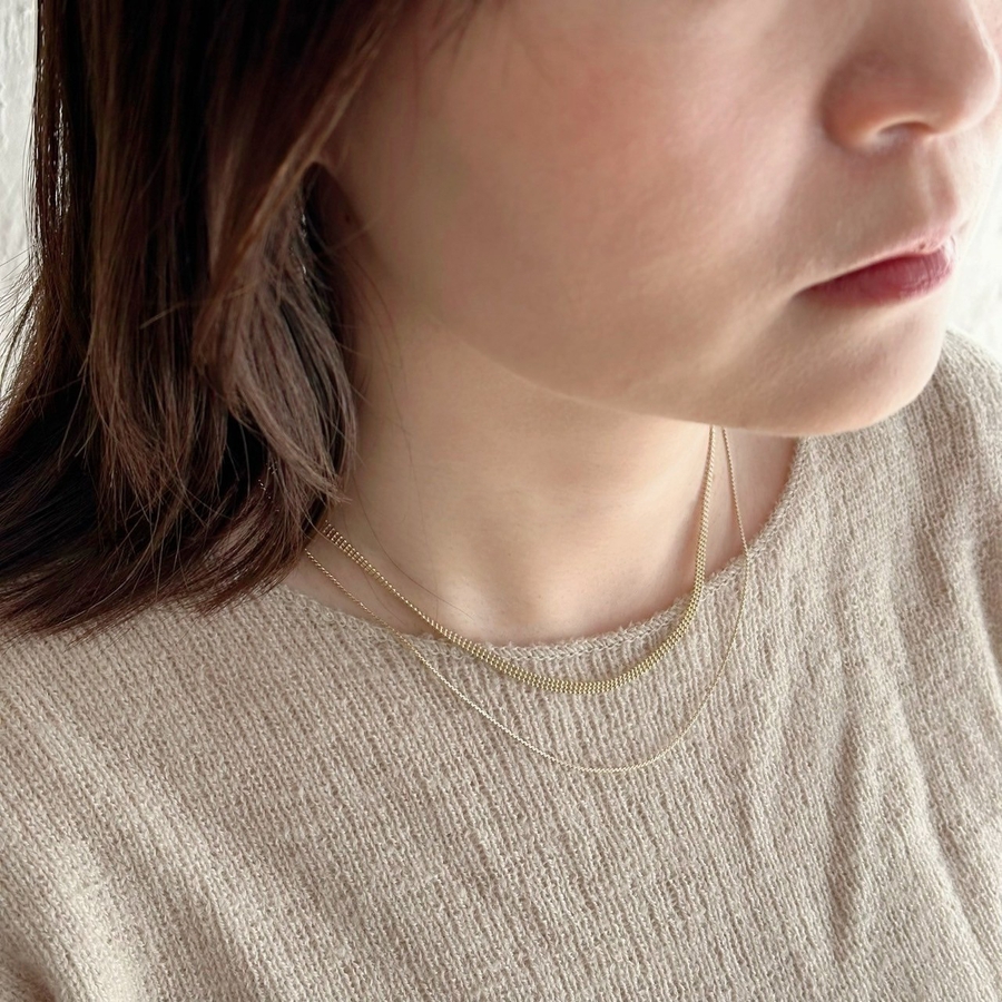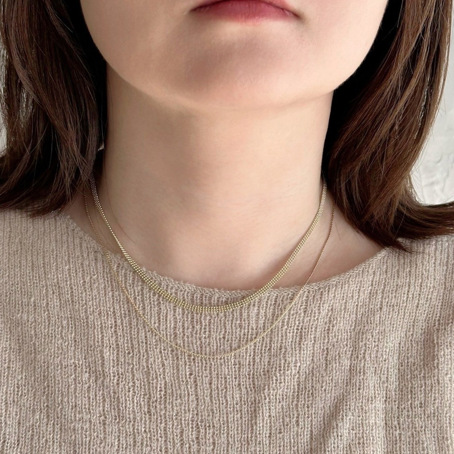 フラットな幅広ボールチェーンと華奢チェーンの
