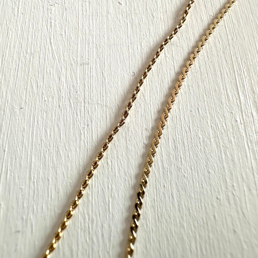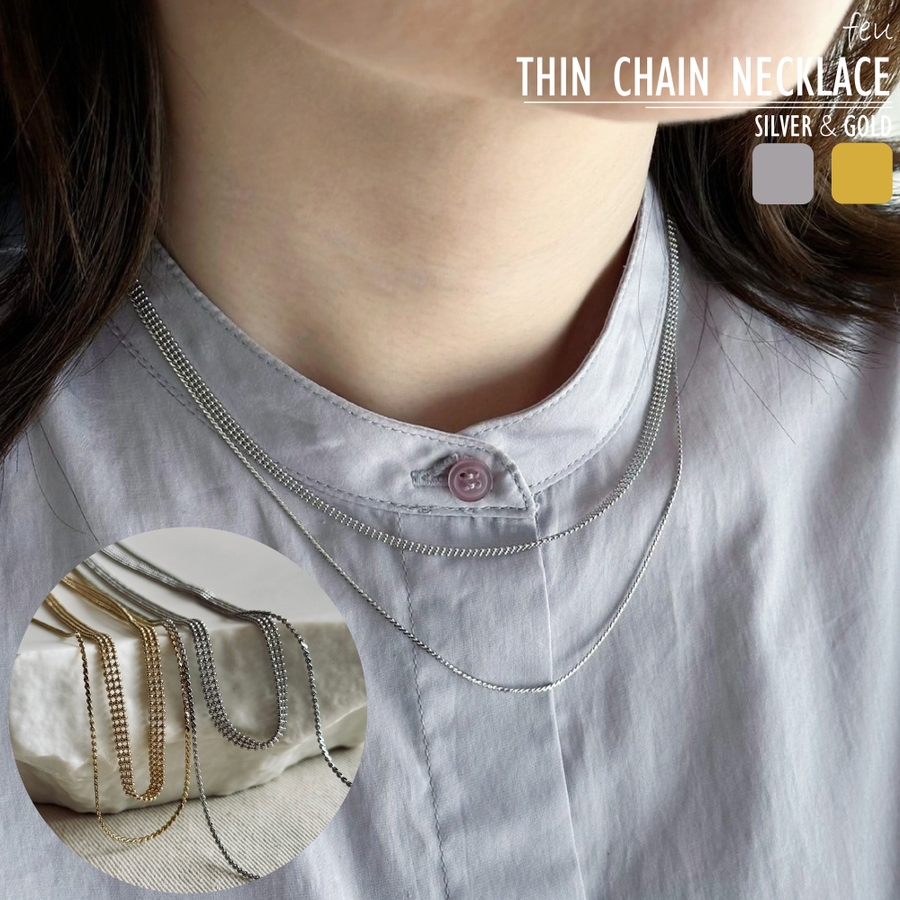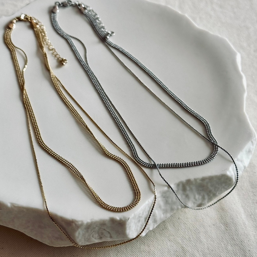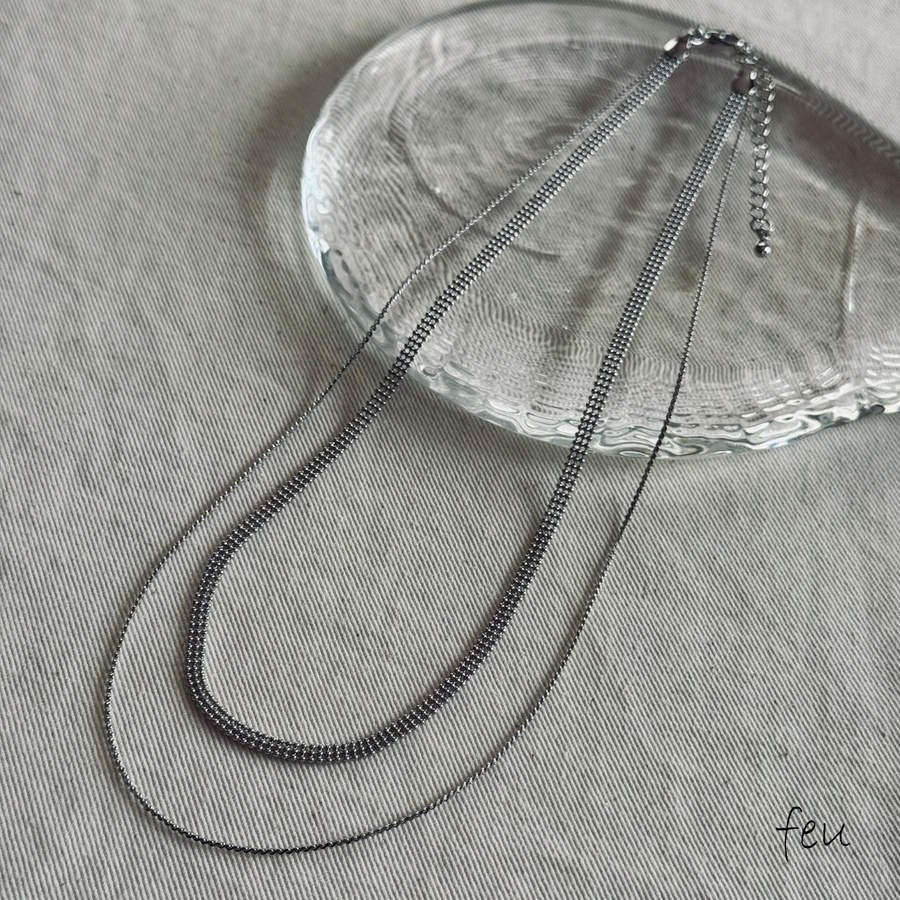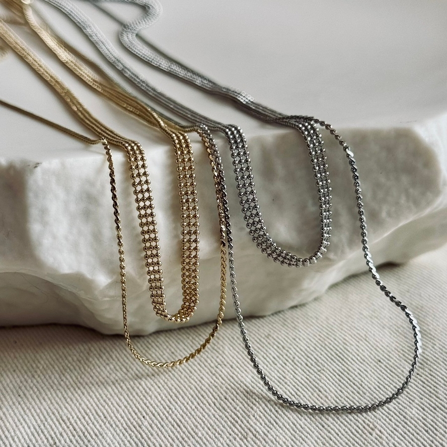 フラットな幅広ボールチェーンと華奢チェーンの