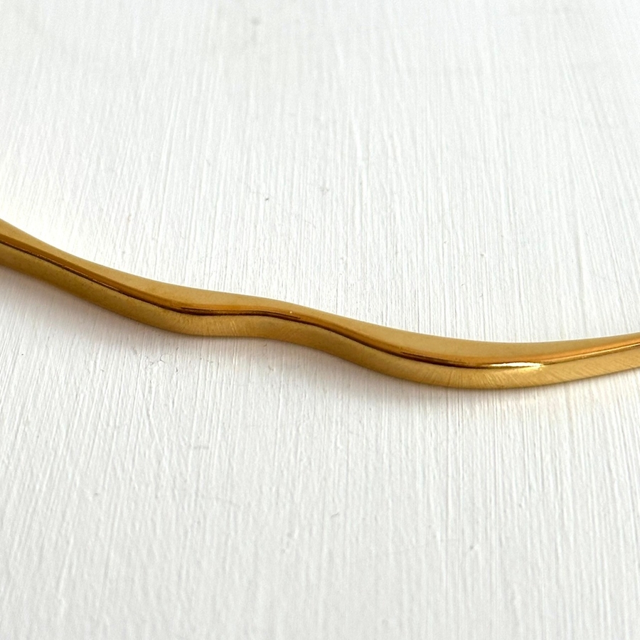 ステンレスの上に18K品位のゴールドを金属メッキコーティングを施しています。
