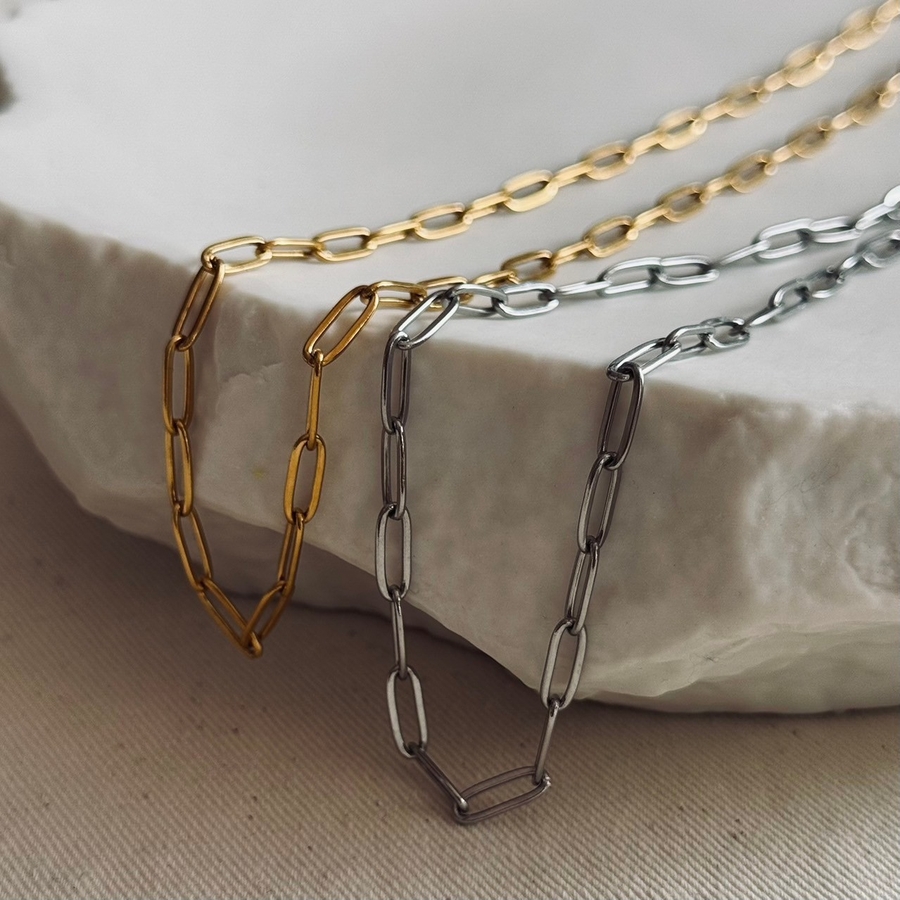 ステンレスの上に18K品位のゴールドを金属メッキコーティングを施しています。