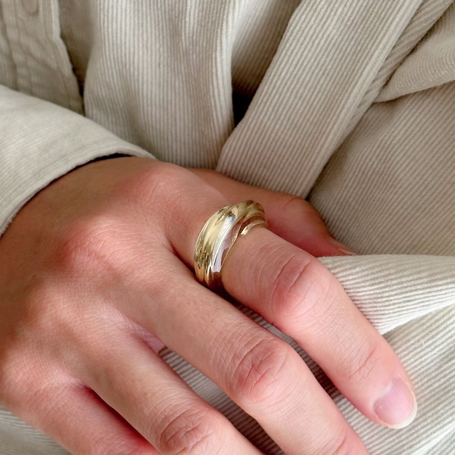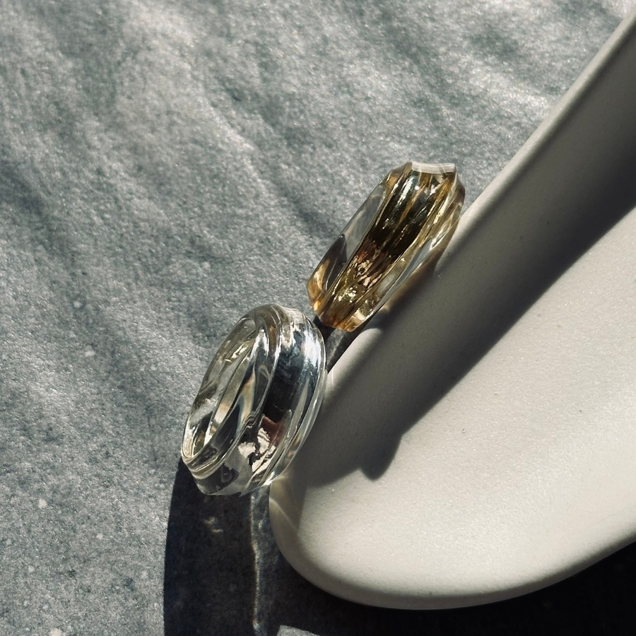 ユニークなラインのクリア樹脂とメタルのコンビリング