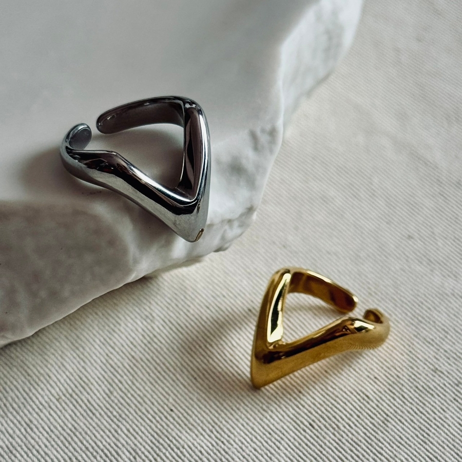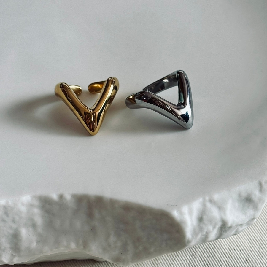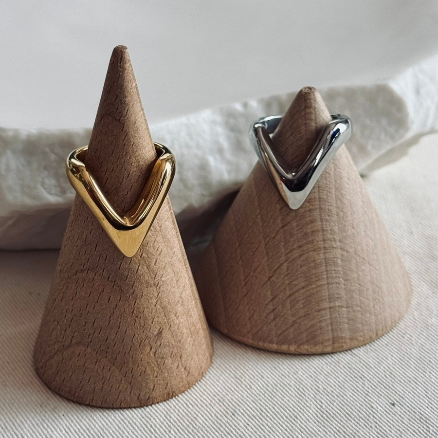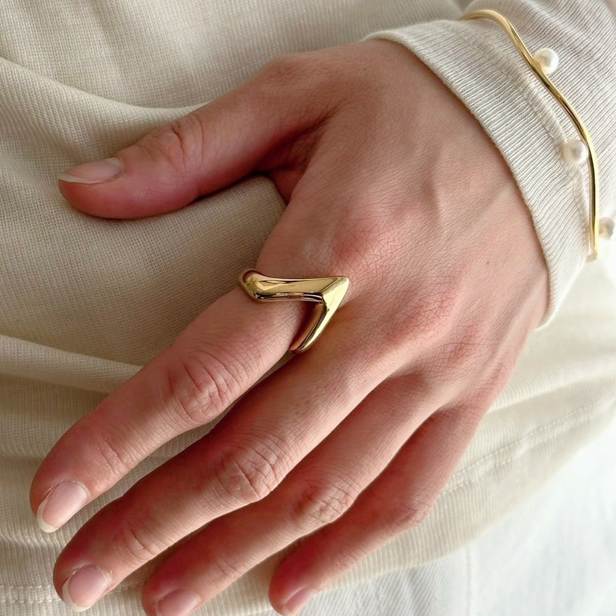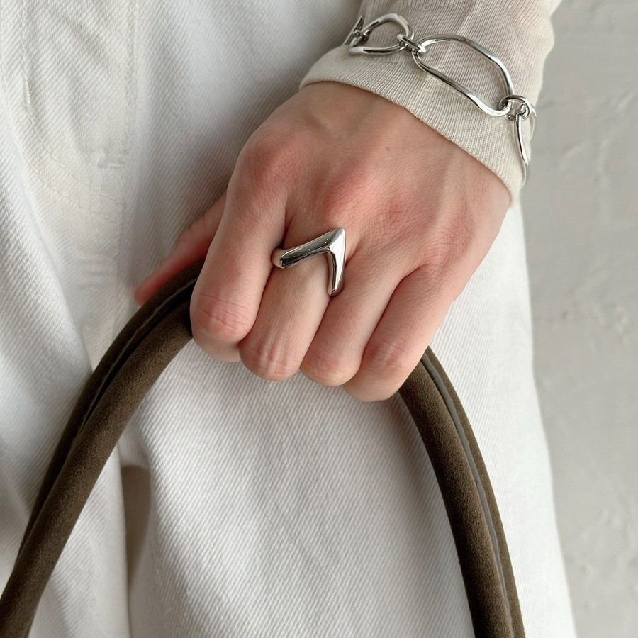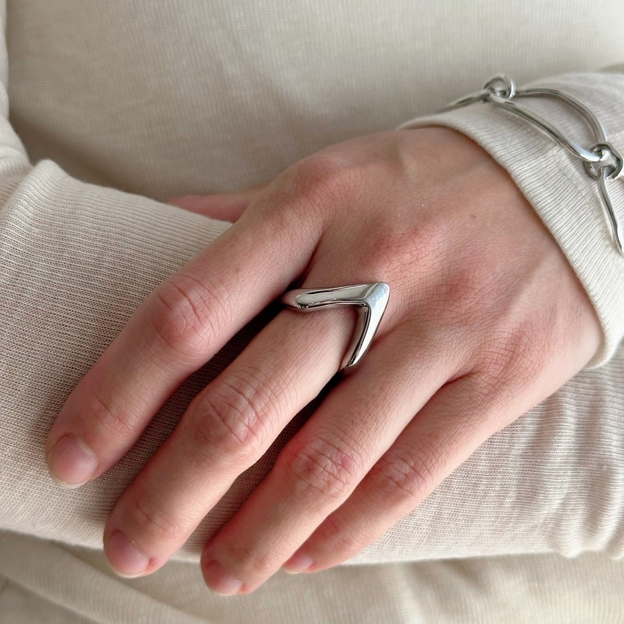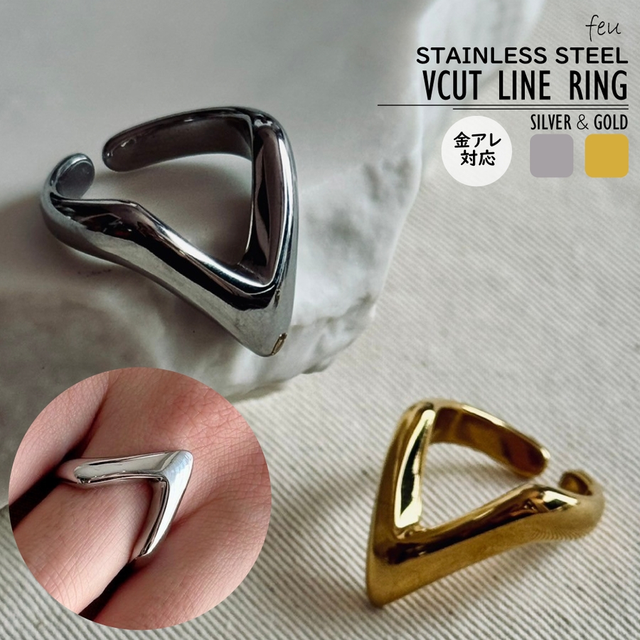 Vカットが手元に映えるサージカルステンレスリング