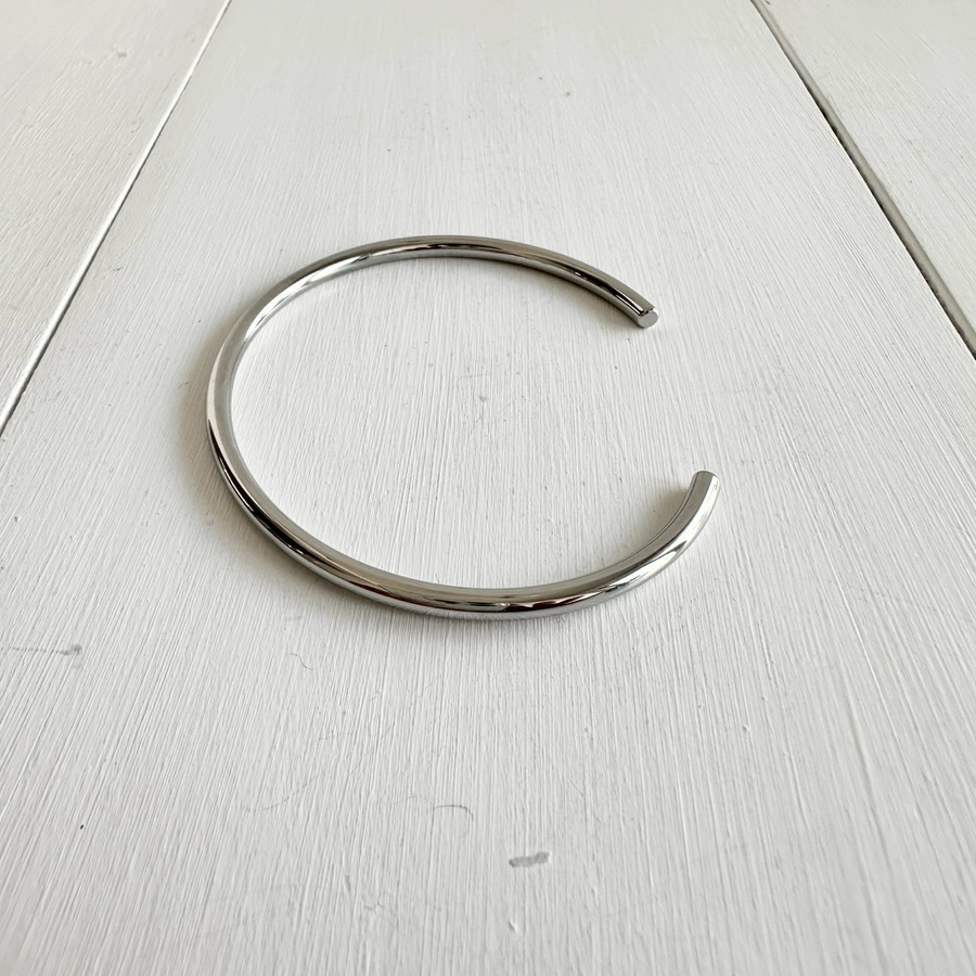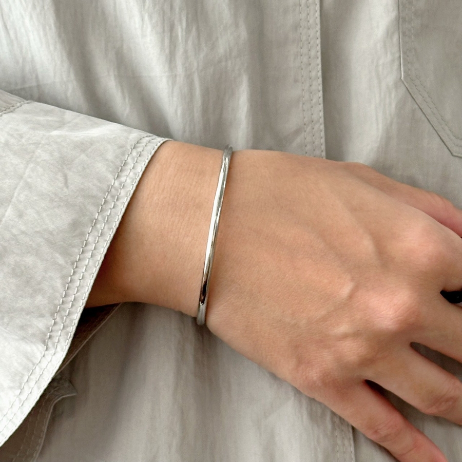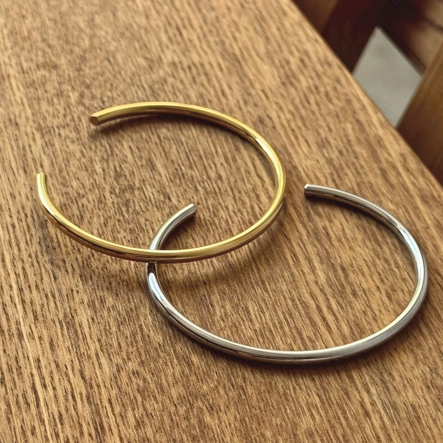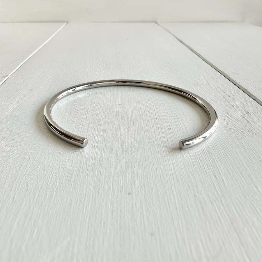 無駄のないミニマルなデザインのサージカルステンレスブレスレット。