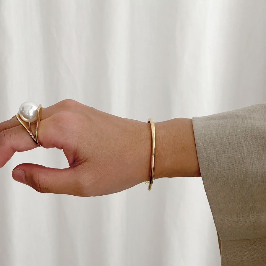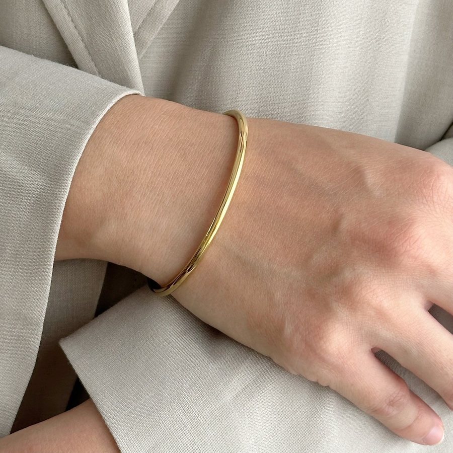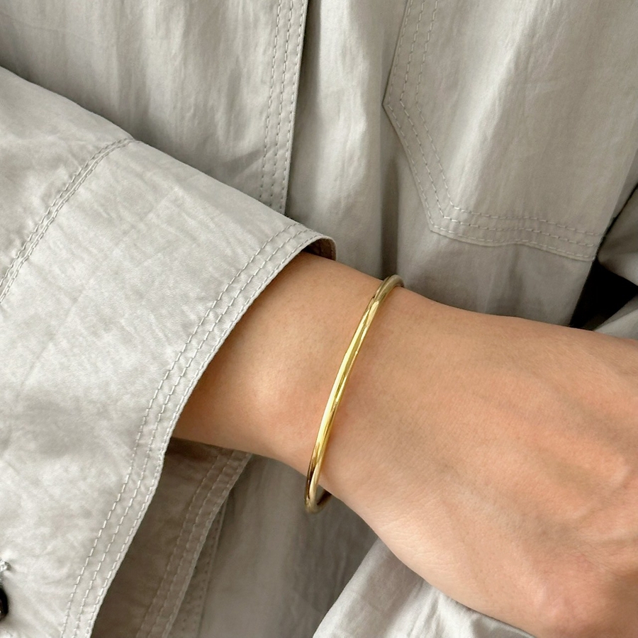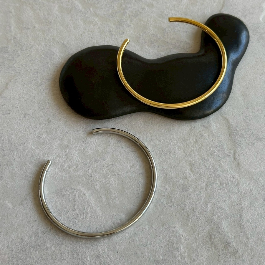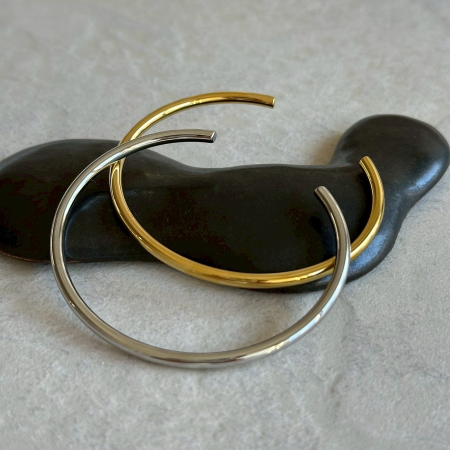 無駄のないミニマルなデザインのサージカルステンレスブレスレット。