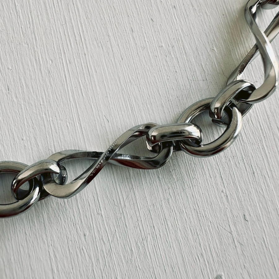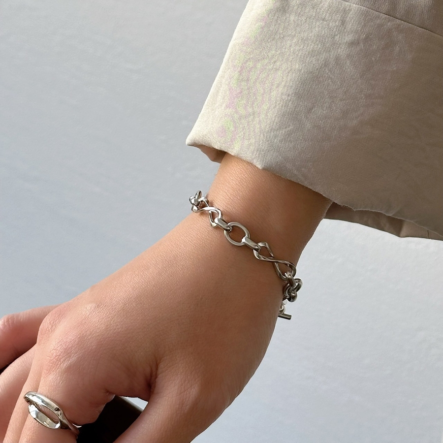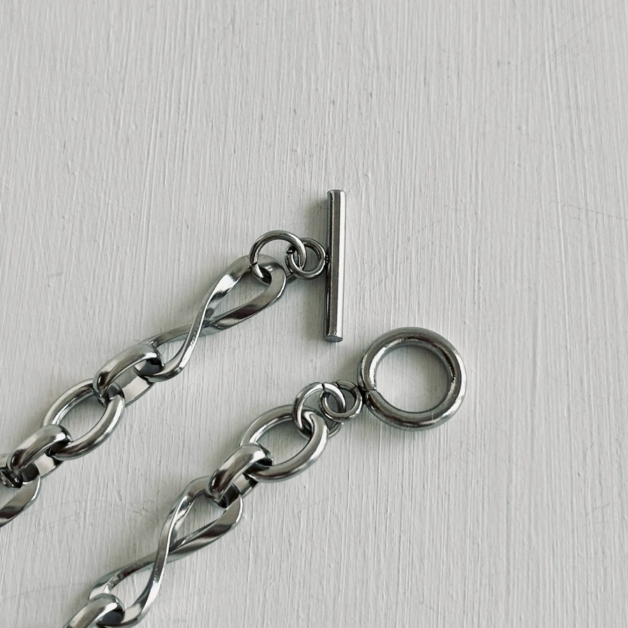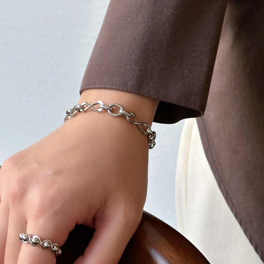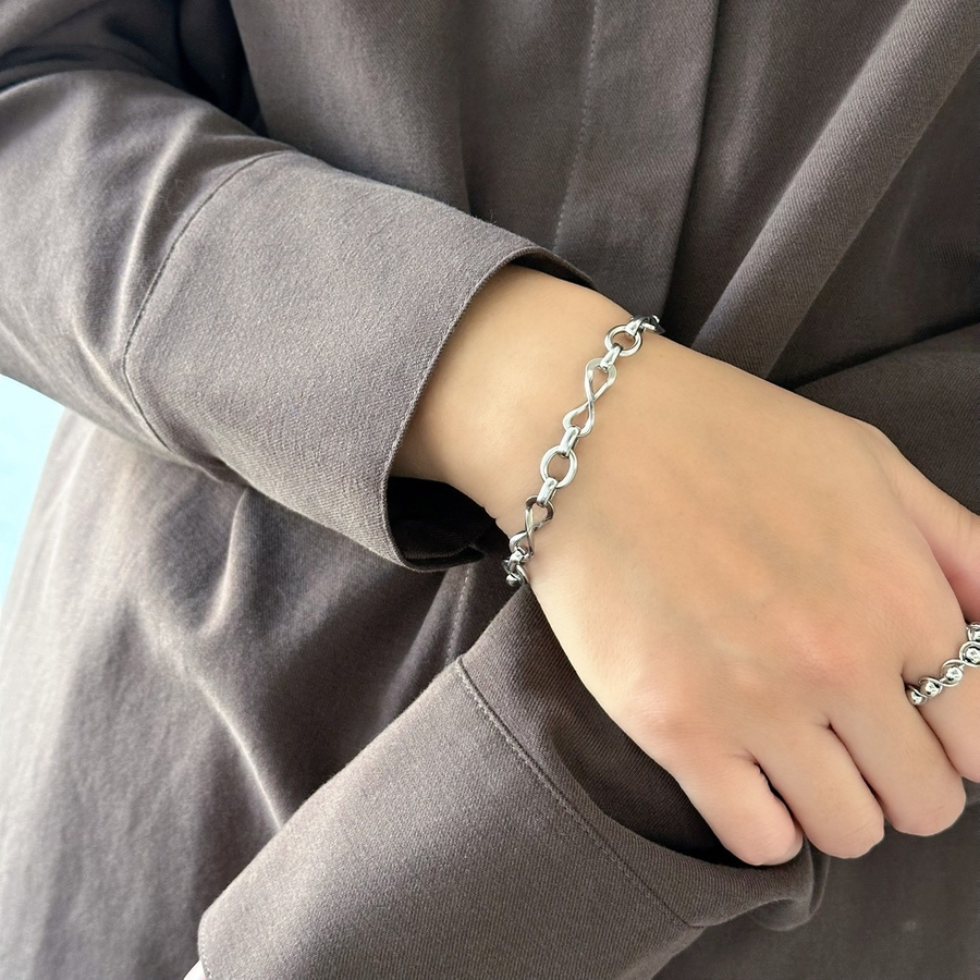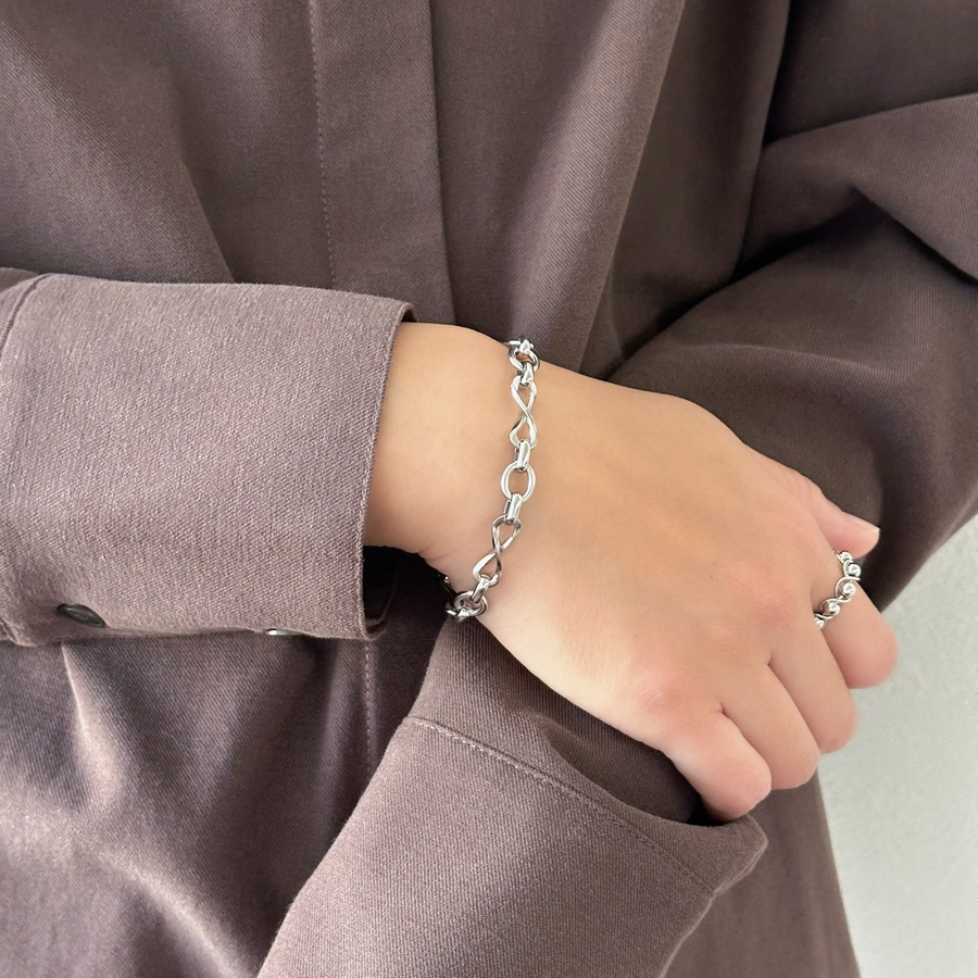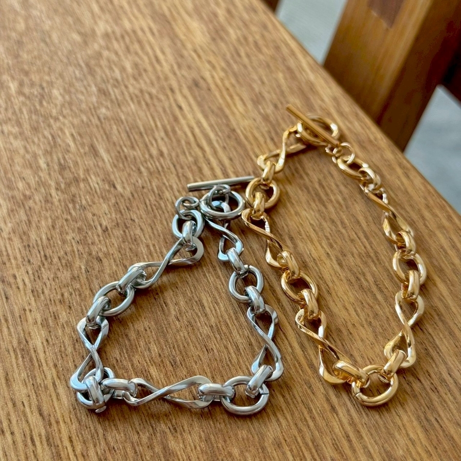 手元を洗練された印象に演出するサージカルステンレスチェーンブレスレット。