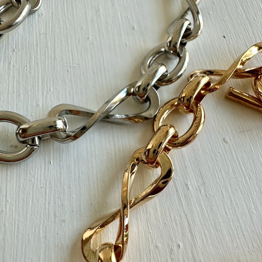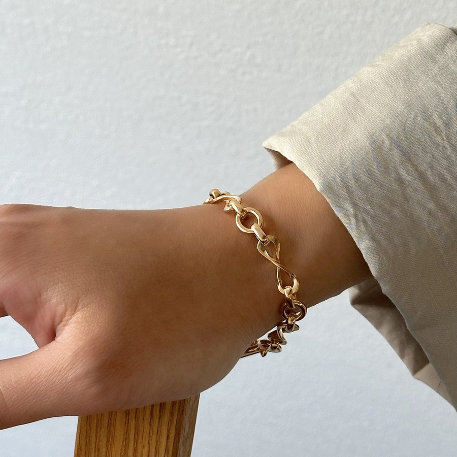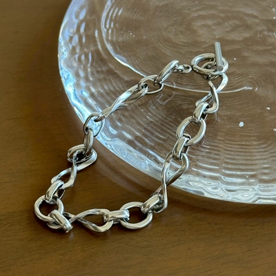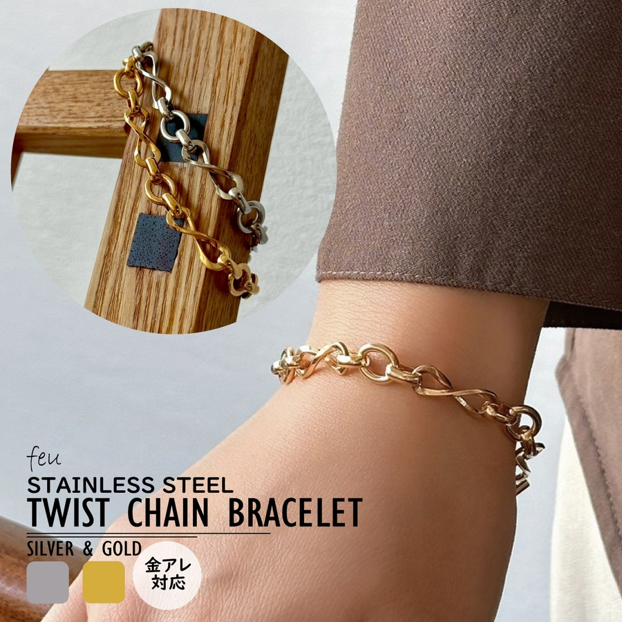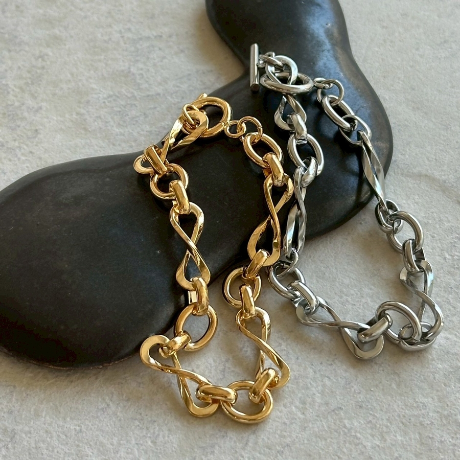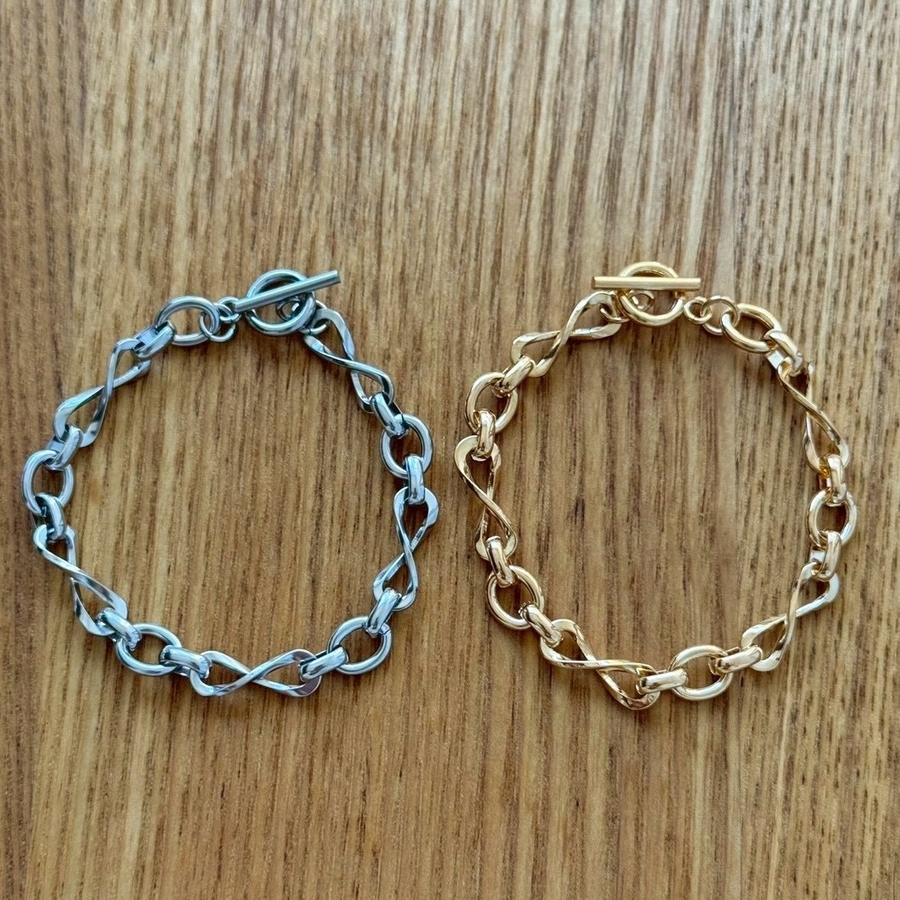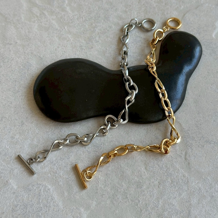 手元を洗練された印象に演出するサージカルステンレスチェーンブレスレット。