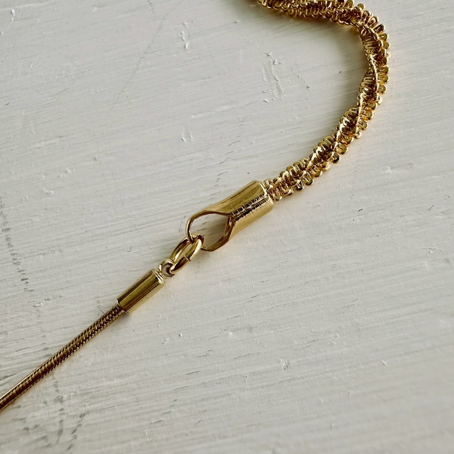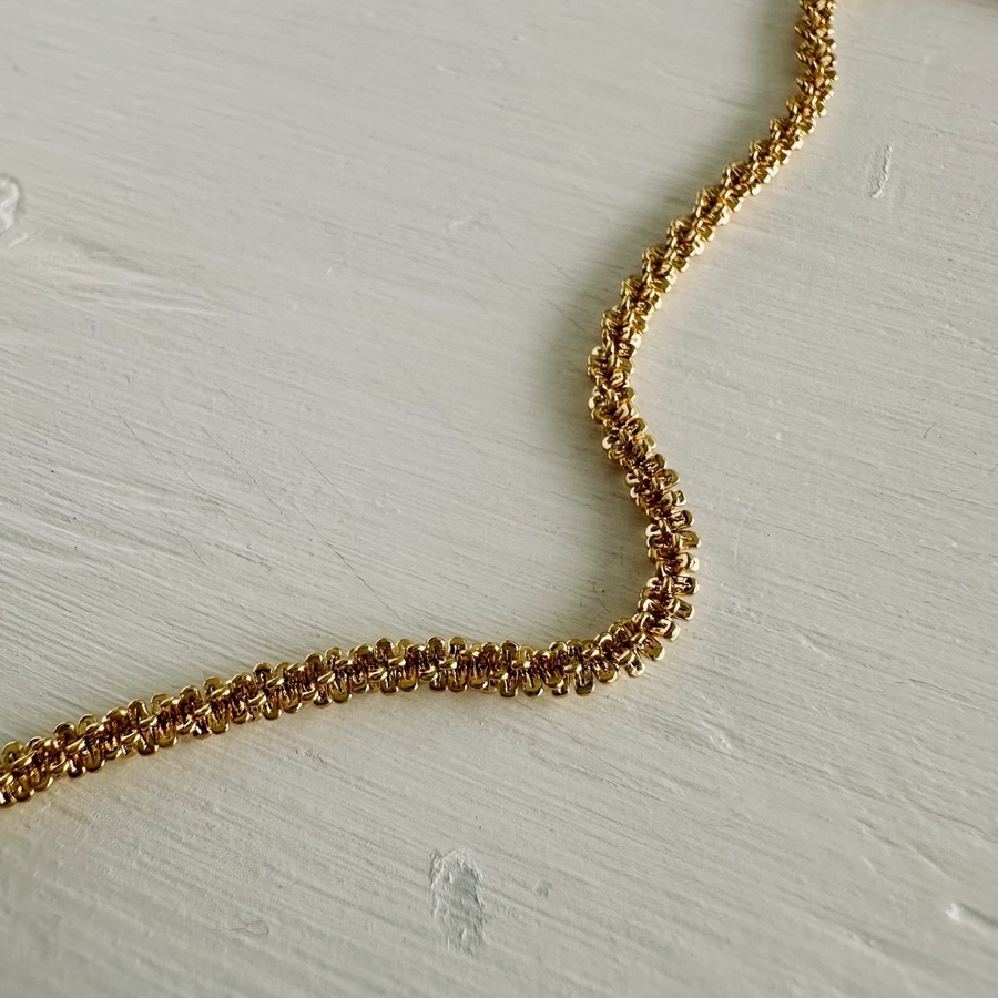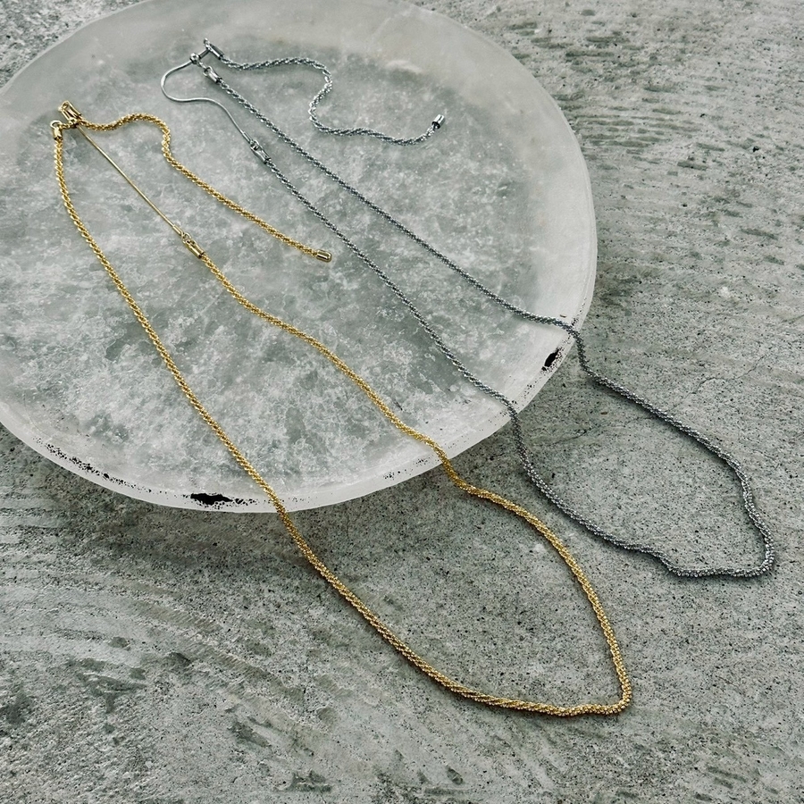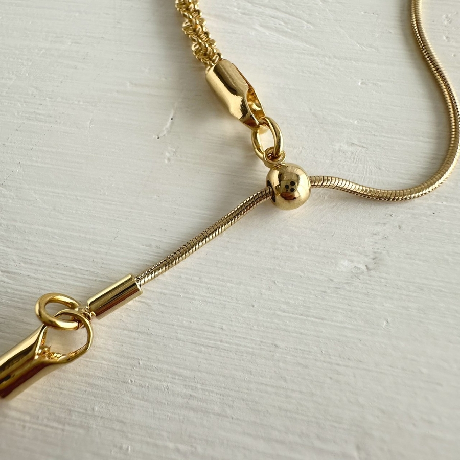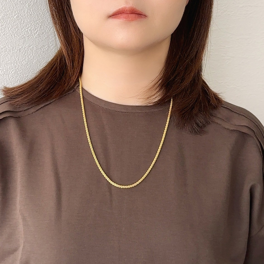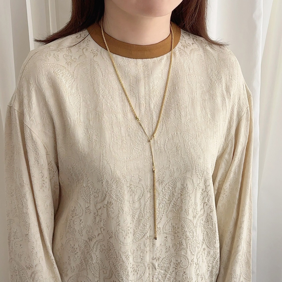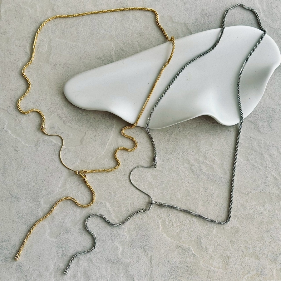 首元をすっきりと美しく見せる、Y字デザインのスクリューチェーンネックレス。