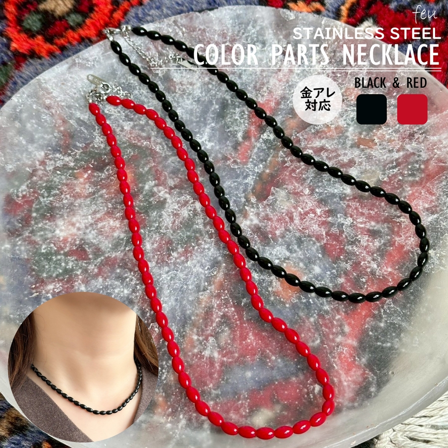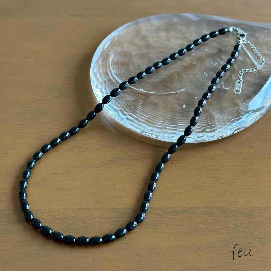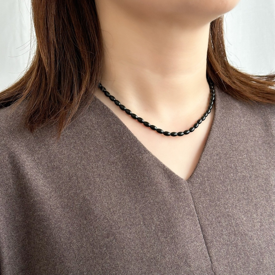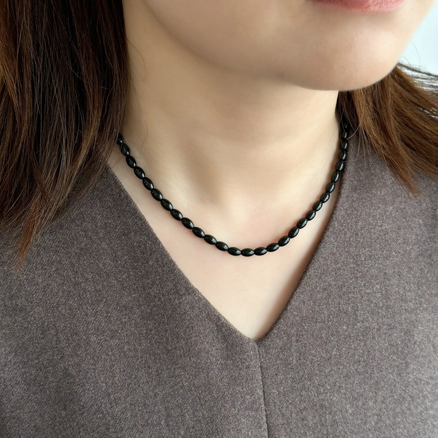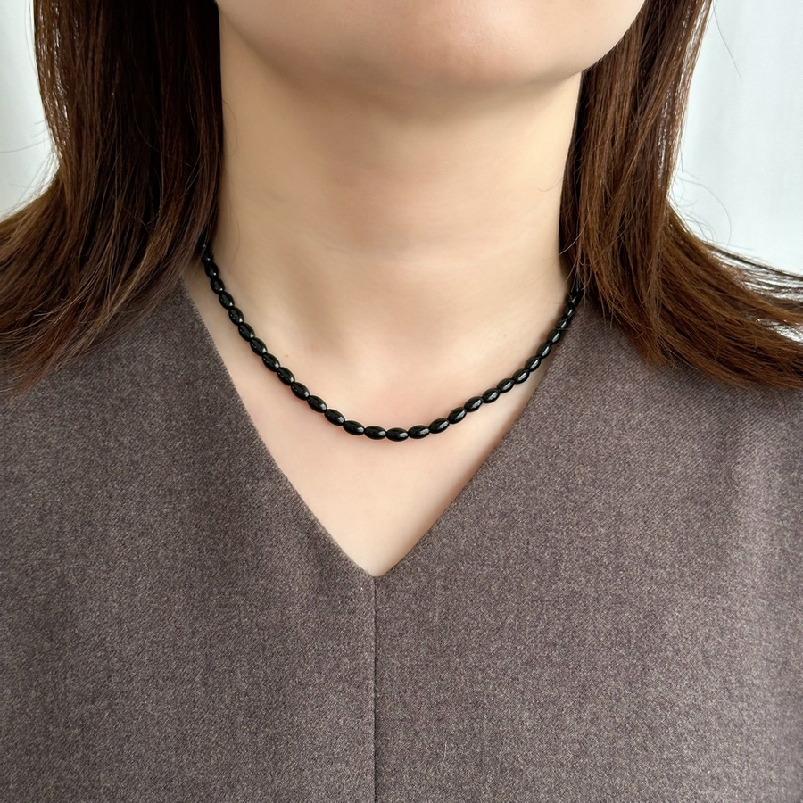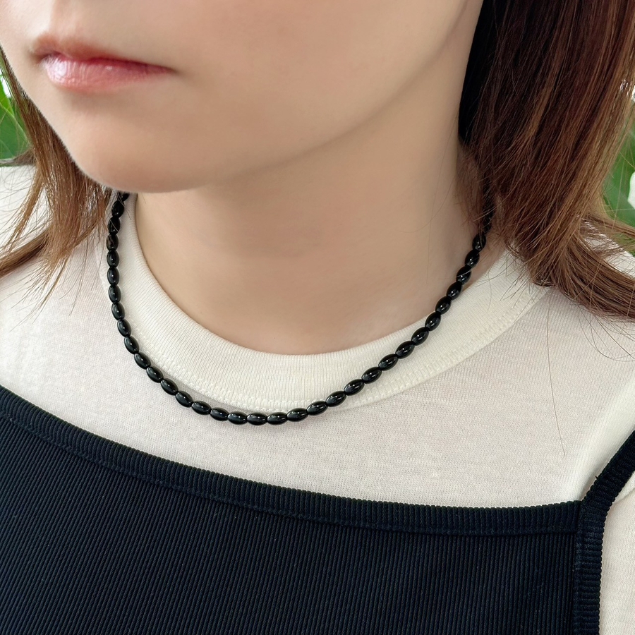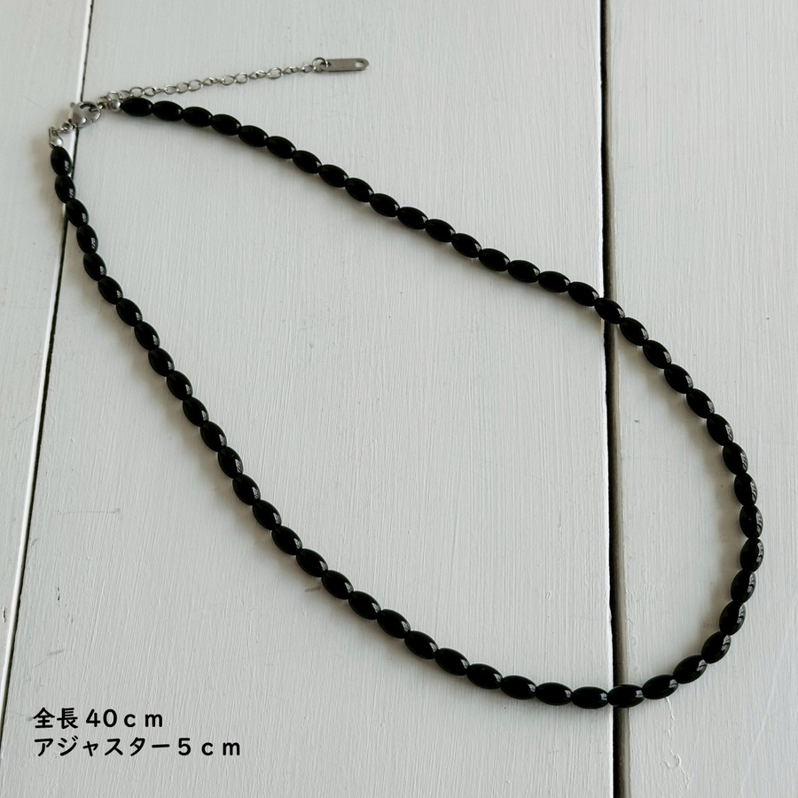 カラーショートネックレス サージカルステンレス オニキス