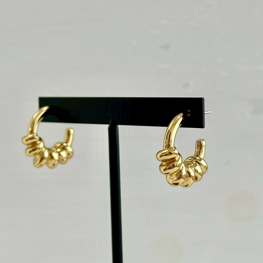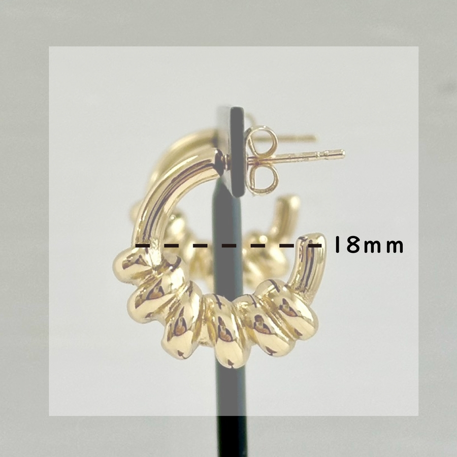 万能なフープピアスにアクセントを用いた個性の光るルックス。