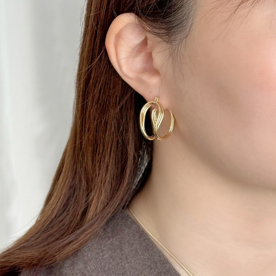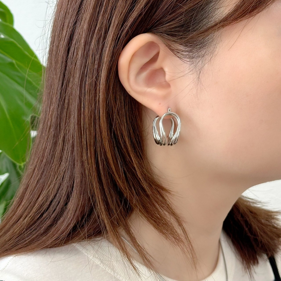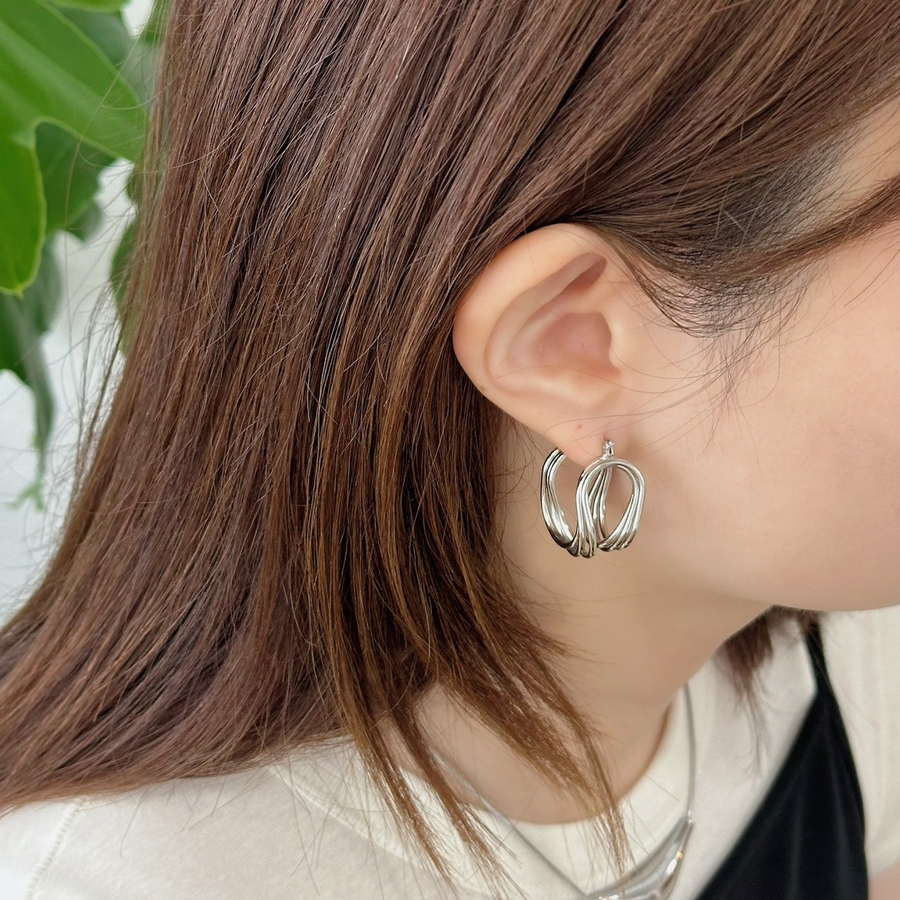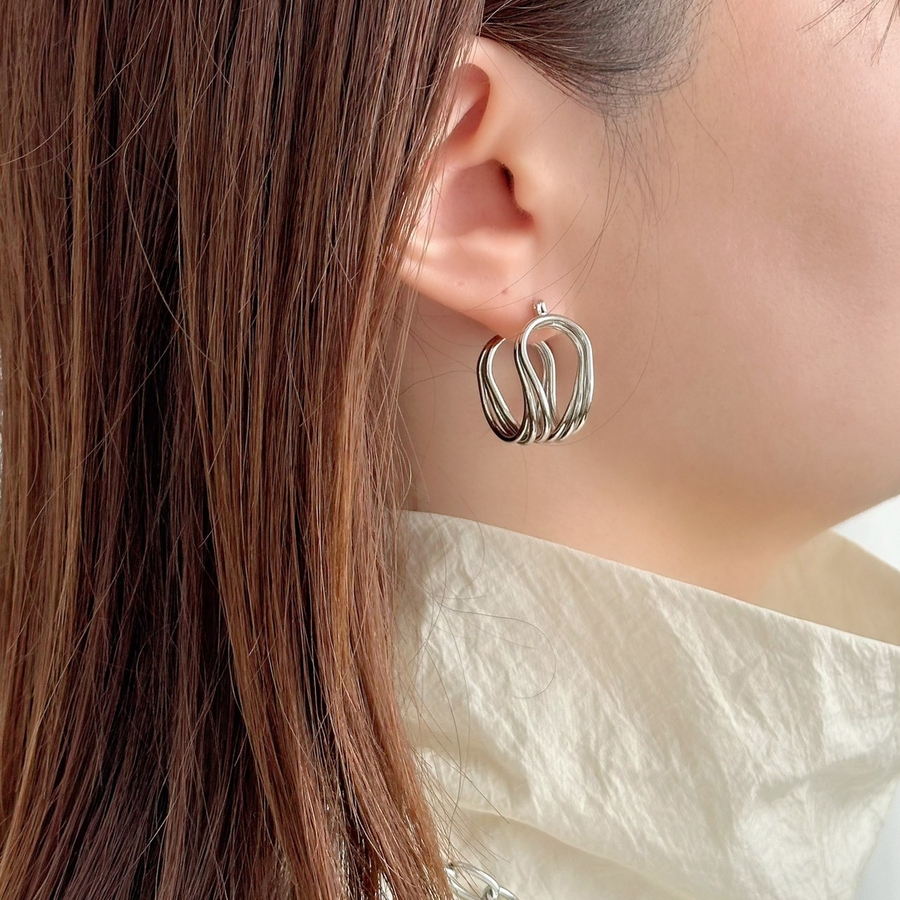 フープピアス 変形メタル ワイヤーアートデザイン