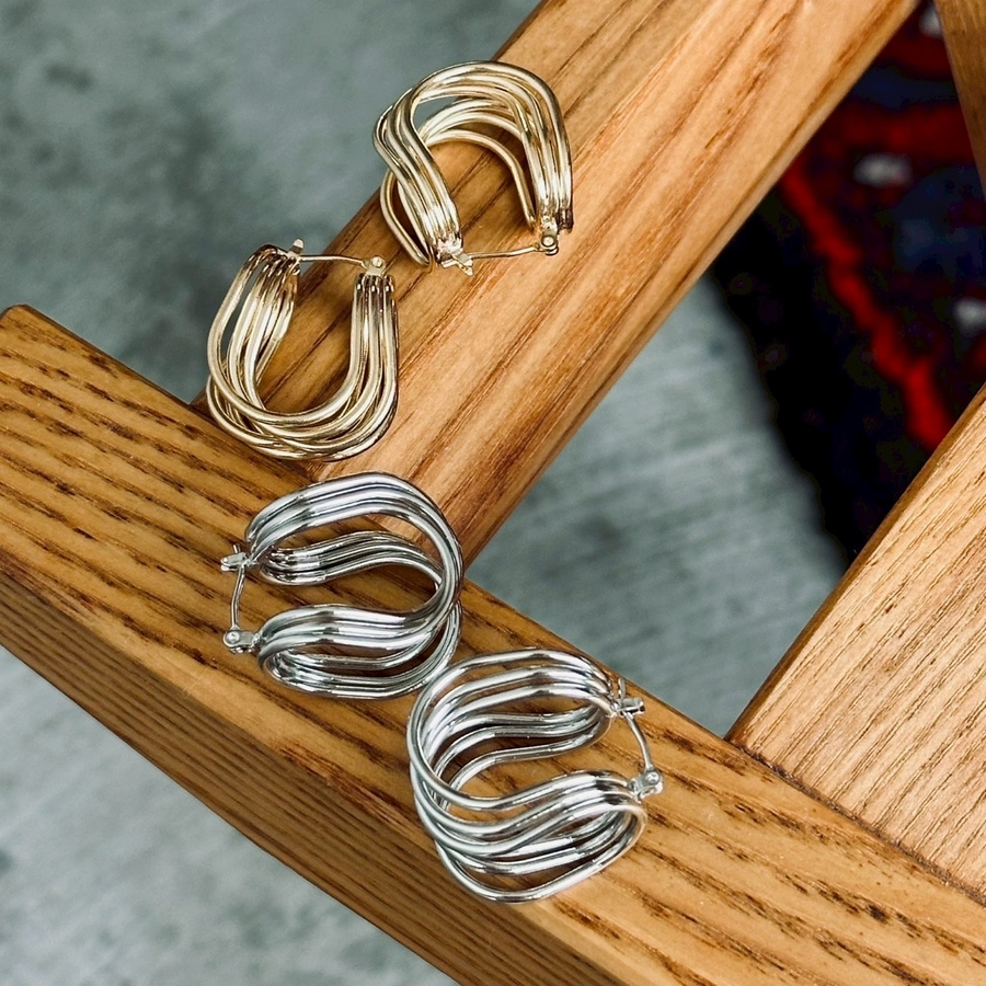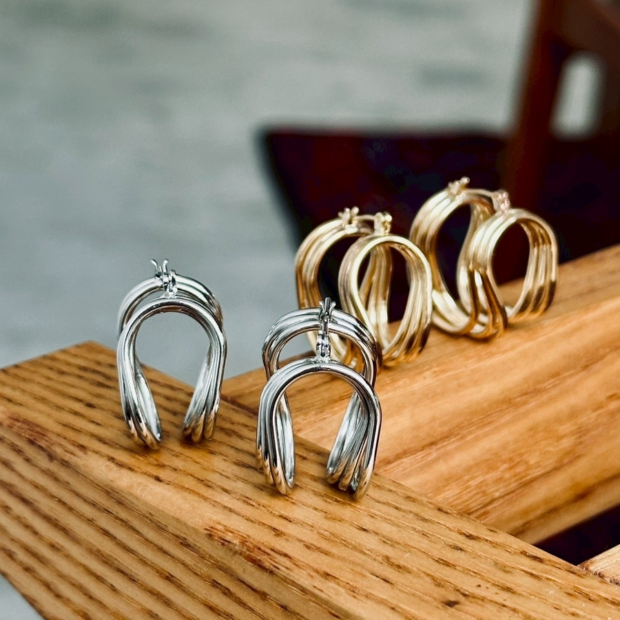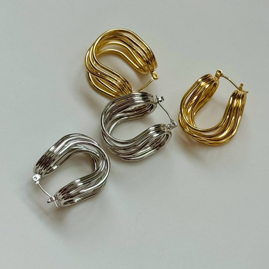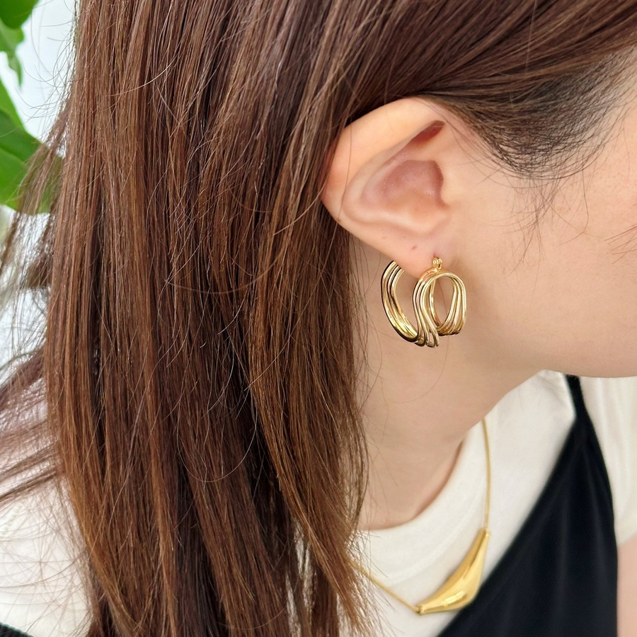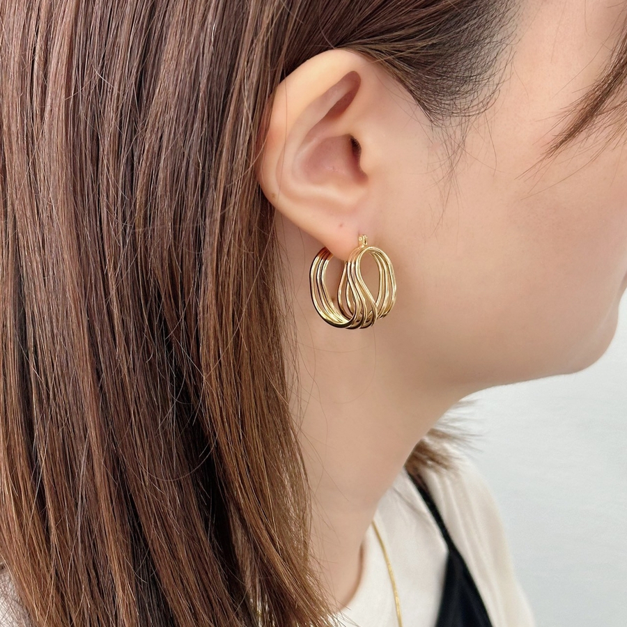 フープピアス 変形メタル ワイヤーアートデザイン