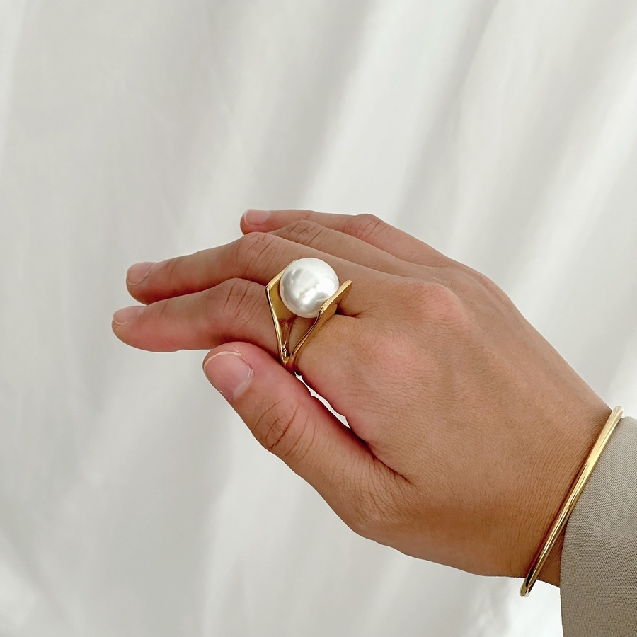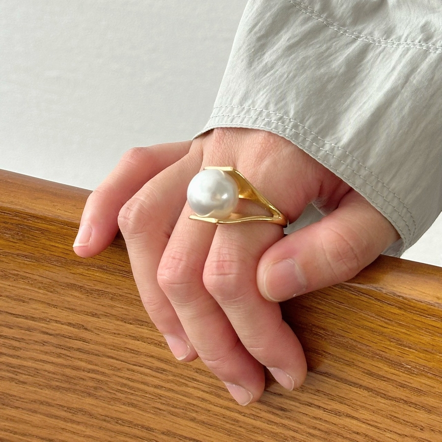 ふっくらとした大粒のパールが、指先に上品な輝きをプラス。