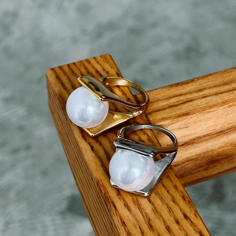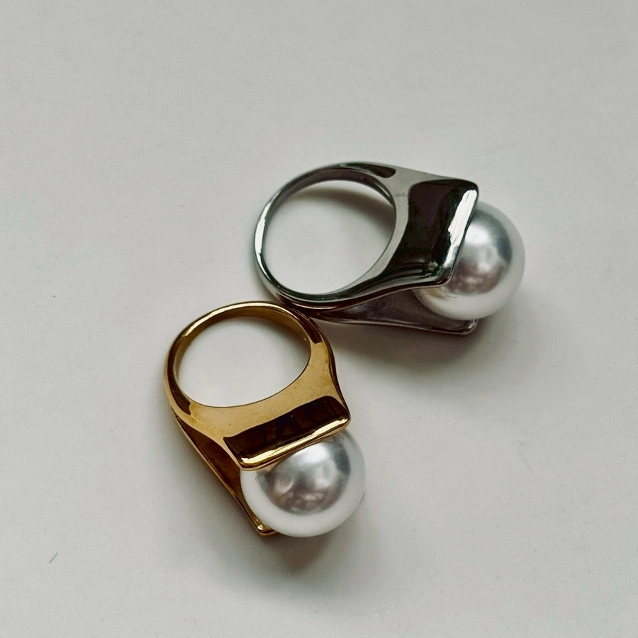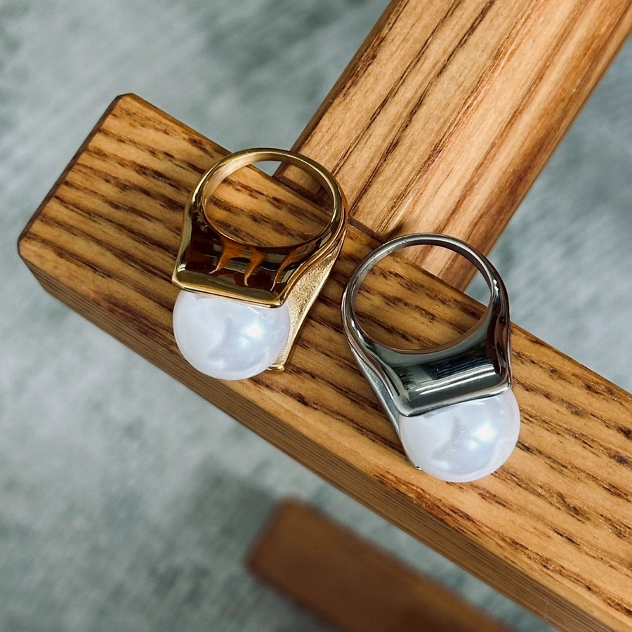 サージカルステンレスリング 樹脂パール 大ぶり