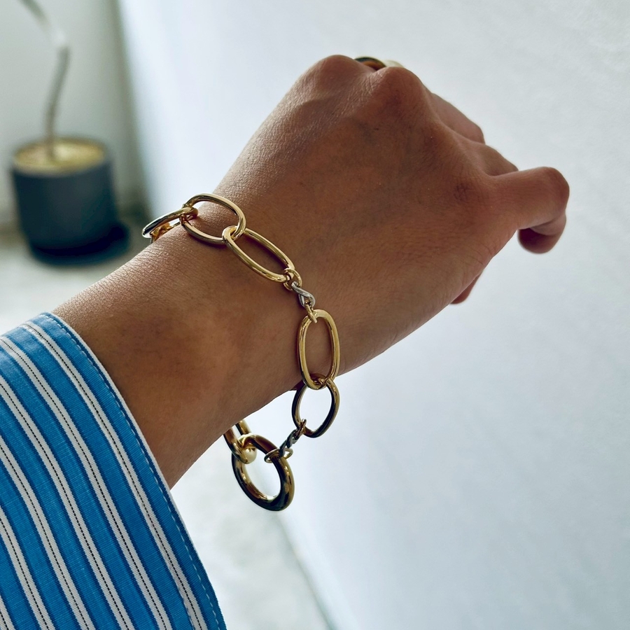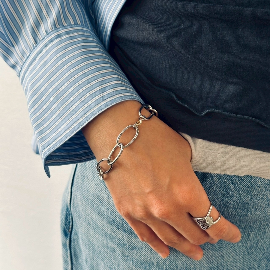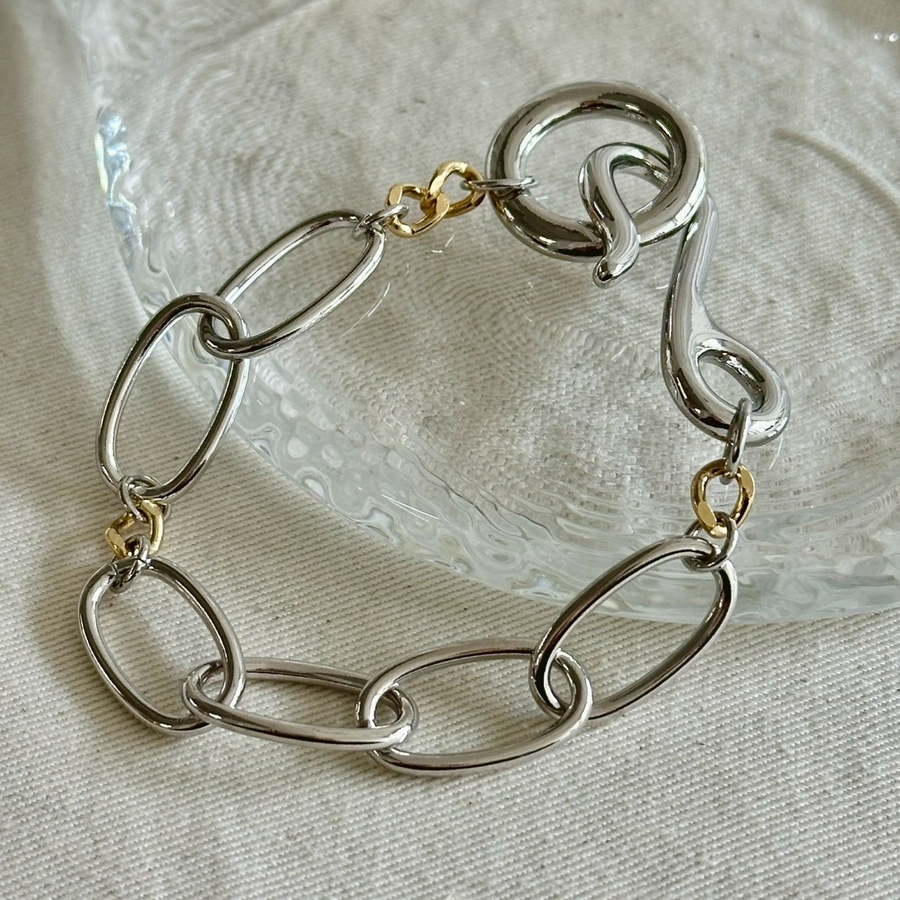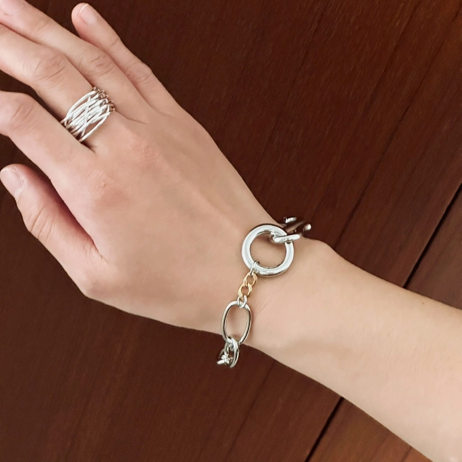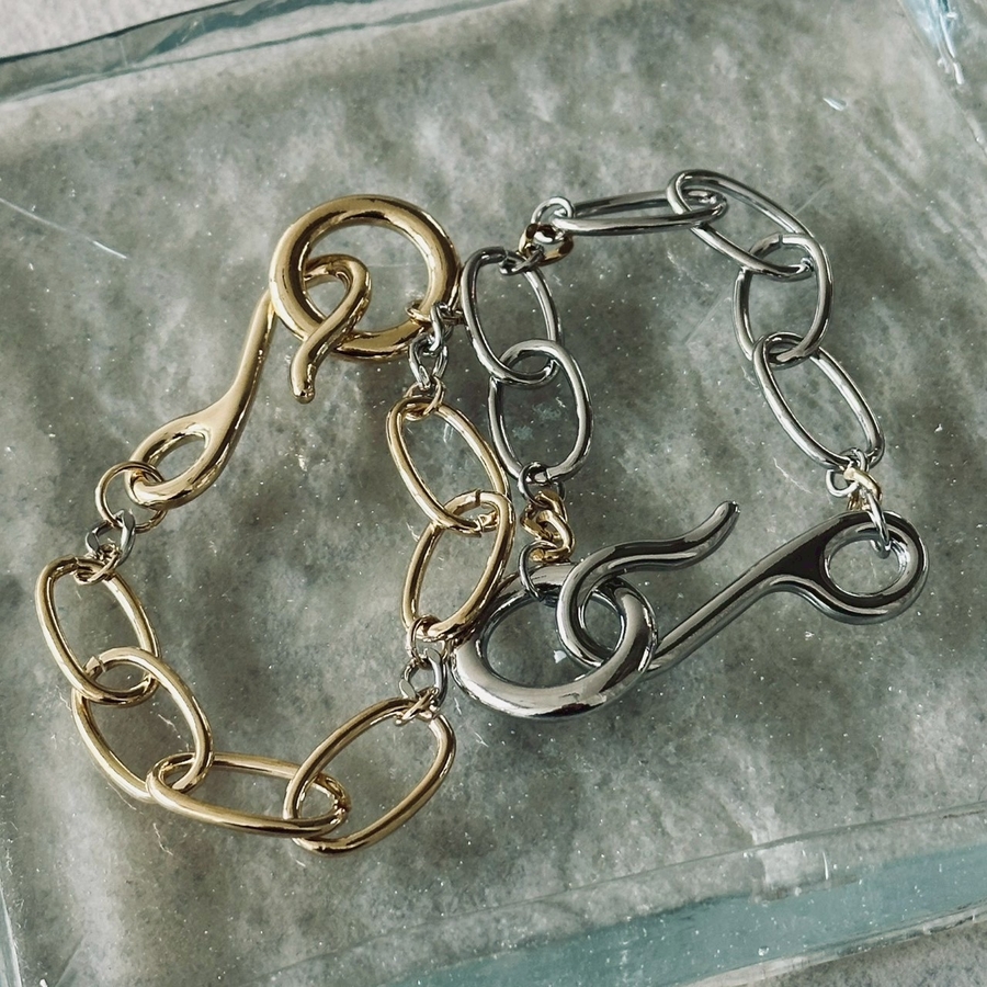 バイカラーチェーンデザインが目を引くオーバルチェーンブレスレット