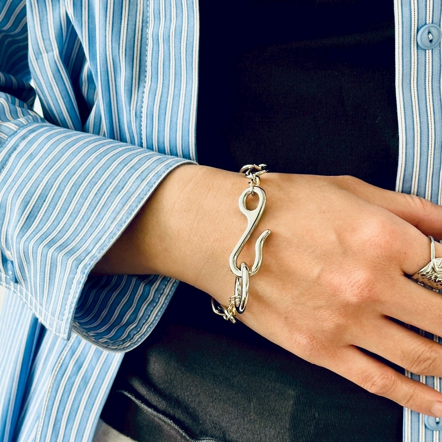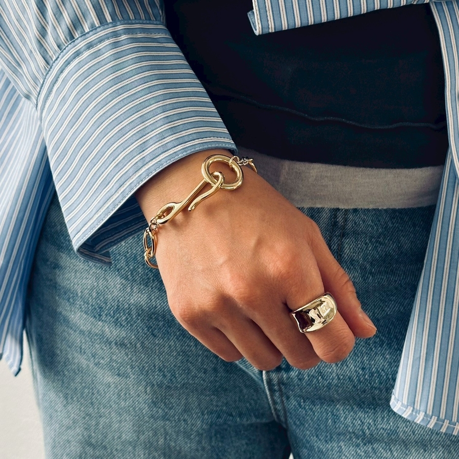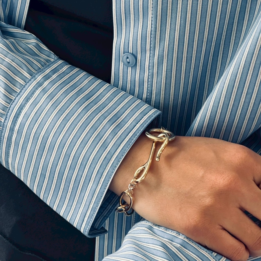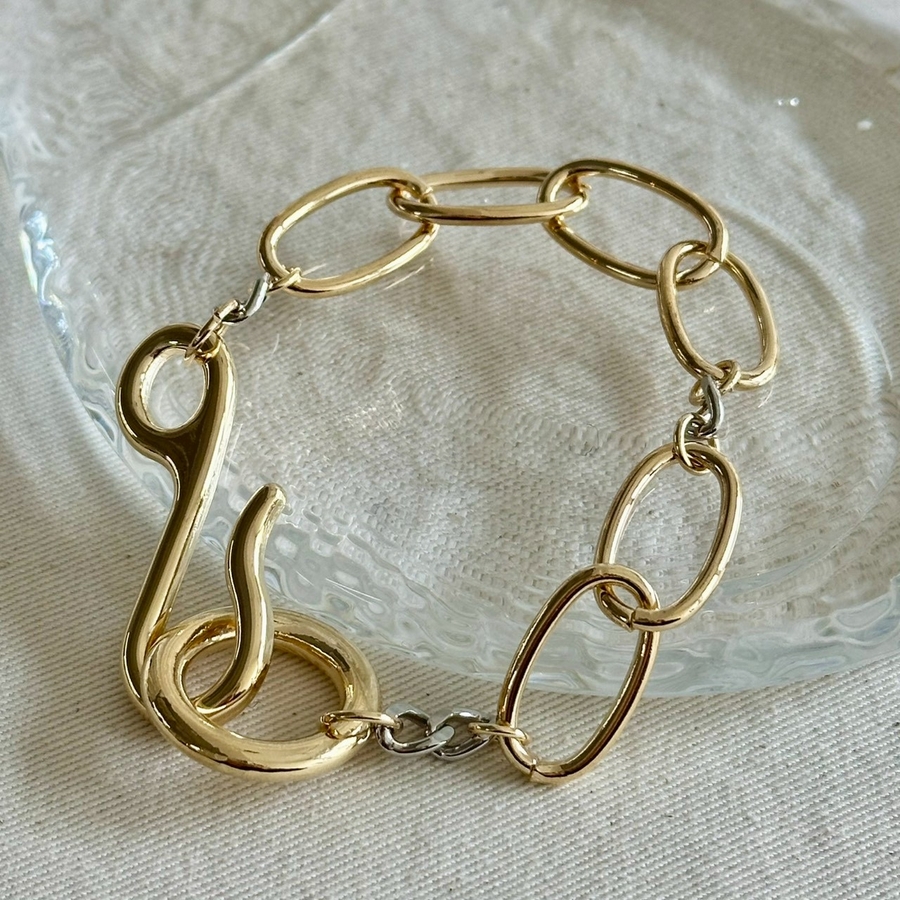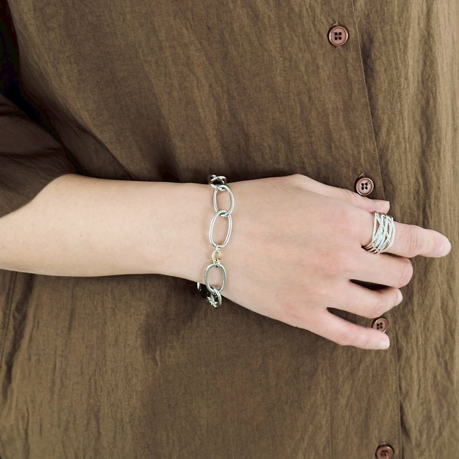 バイカラーチェーンデザインが目を引くオーバルチェーンブレスレット