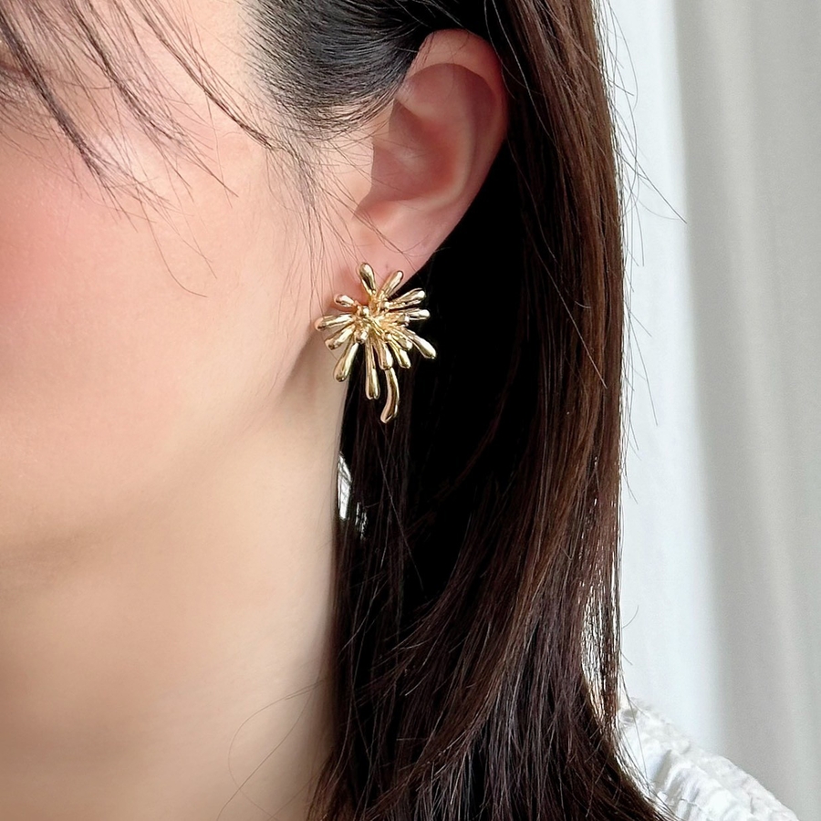 大ぶりで立体感のあるデザインが、顔周りを華やかに演出し、