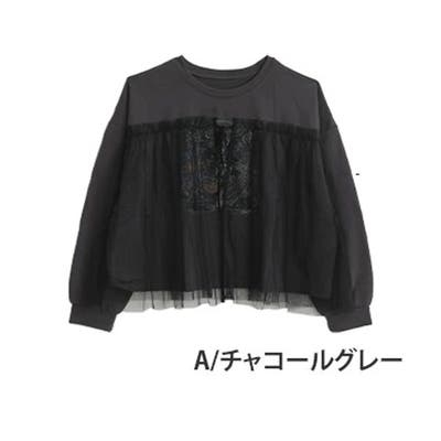 チュールとスウェットの異素材使いプルオーバー