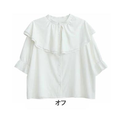 襟フリル ハーフスリーブ ブラウス