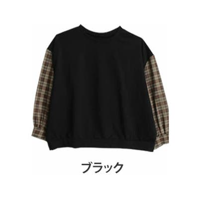 【ラファモプロデュース】 チェック袖切替 スウェット トレーナー