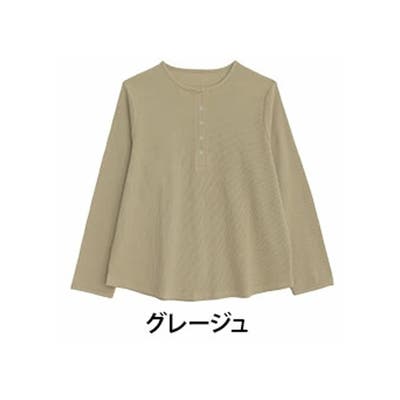 コットン100%ワッフルシリーズ 首元がかわいいヘンリーネックT