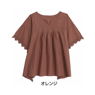 ふわりと広がる五分袖ピンタック&レースシャツ