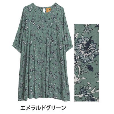 大きいサイズ レディース ワンピース | 【les Olivades】 ひやさら 心地よい 総柄 タック ワンピース _ ワンピース ワンピ デザインワンピ LL 3L 4L 5L 夏 夏物 夏服 夏用 ぽっちゃり ゆったり カジュアル ナチュラル プラスサイズ [653278] 韓国 韓国ファッション 大人 大人女子 ハッピーマリリン ハピマリ マリリン ノンエイジ 10代 20代 30代 40代 50代 エイジレス 体型カバー スタイルアップ 通勤 通学 オフィス オフィスカジュアル タウンユース デイリーユース オーバーサイズ オーバーシルエット ビッグサイズ ビッグシルエット