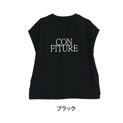 Tシャツ感覚のキレイめカジュアル フレンチ袖ロゴ入りTブラウス