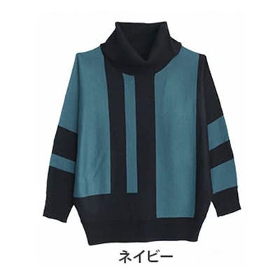 『首元苦しくない』ゆるっと小顔魅せ洗練配色ドルマンニット