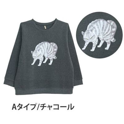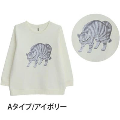 ネコ 裏起毛 プルオーバー オノマイ Ono Mai トレーナー スウェット やんのかネコ しがみつきネコ 大きいサイズ レディース トップス LL 3L 4L 5L 長袖 冬 冬物 冬服 ぽっちゃり ゆったり プラスサイズ かわいい