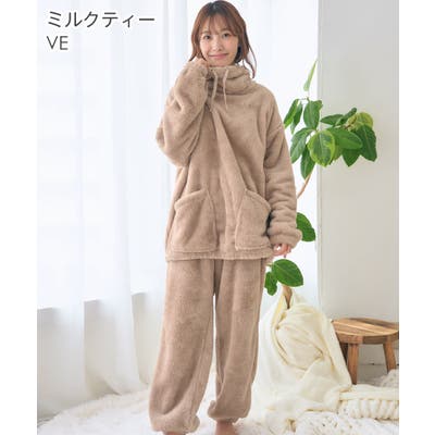 レディース 秋 冬 ルームウエア ナイトウェア 上下セット ハイネック 可愛い ポケット パジャマ 寝間着 もこもこ ぽかぽか ロングパンツ 長袖 あったか 絞り 温活 プレゼント